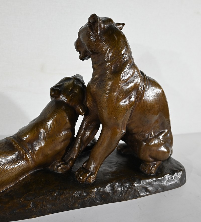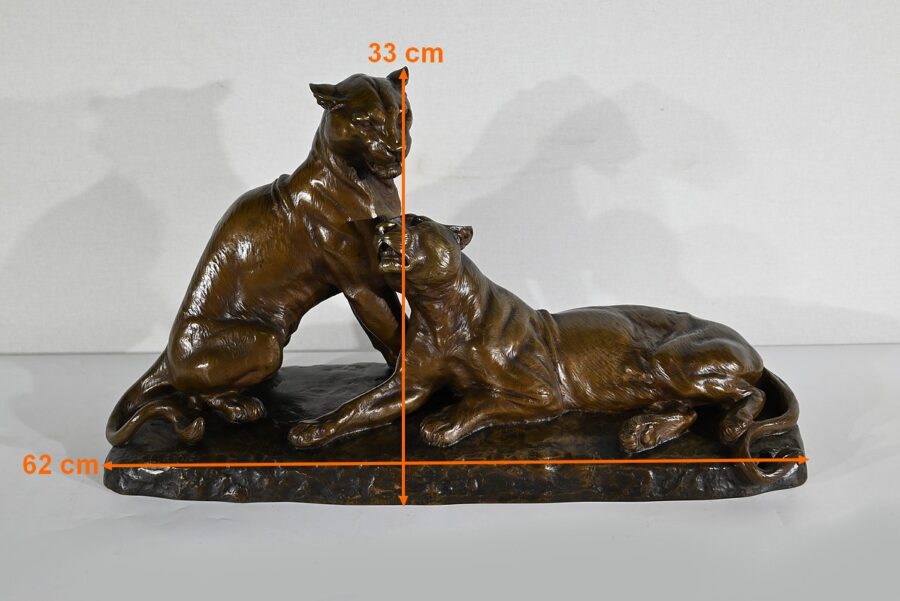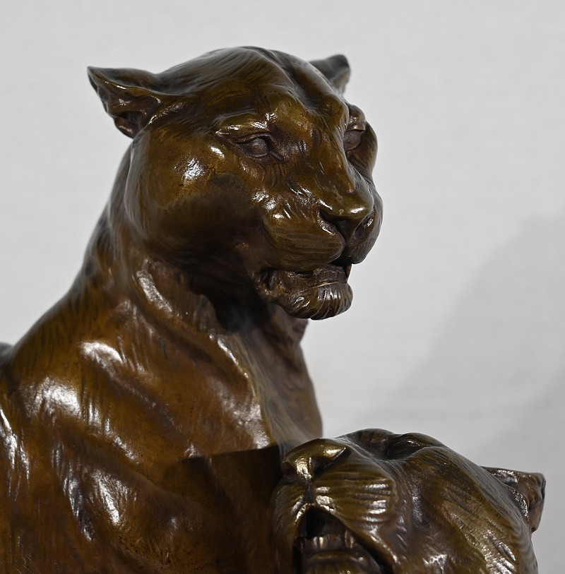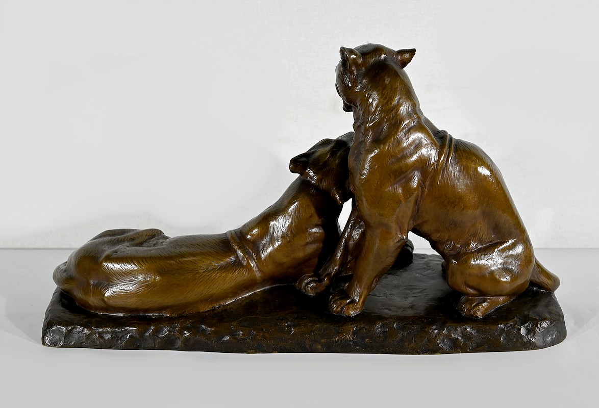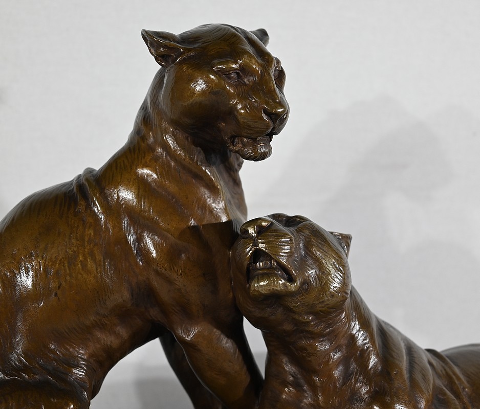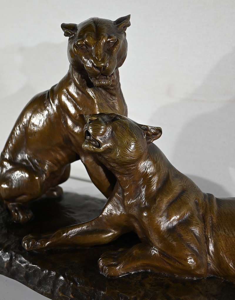 Sculpteur animalier de renom, Louis Riché (1877-1949) marquera son époque par la précision de son travail et sa passion pour les félins. Cet artiste de talent réalise ici une œuvre captivante.