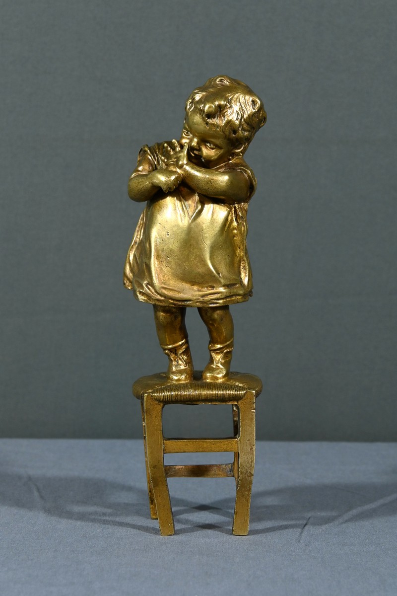 Ses ailes, ses voilages, son arc, son carquois et ses flèches sont dorés, accentuant ses attraits et mettant en valeur le bronze d’une manière générale.