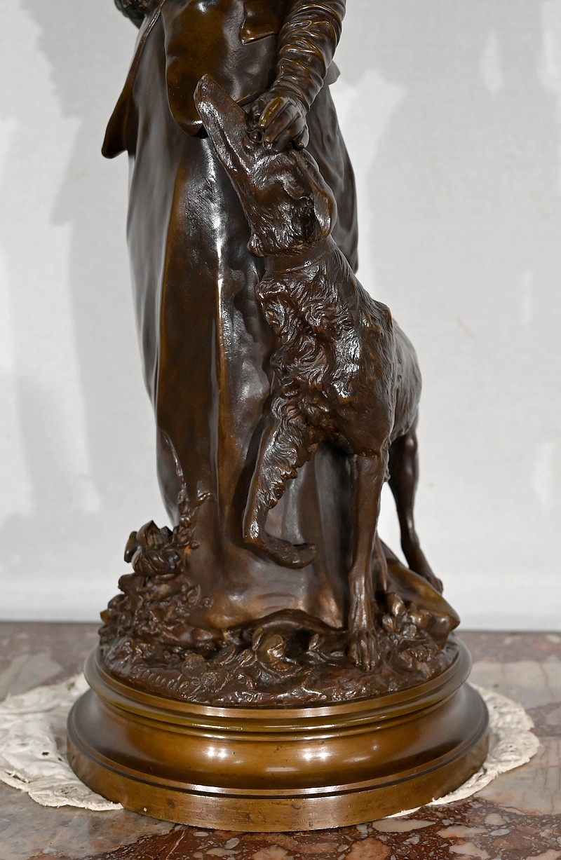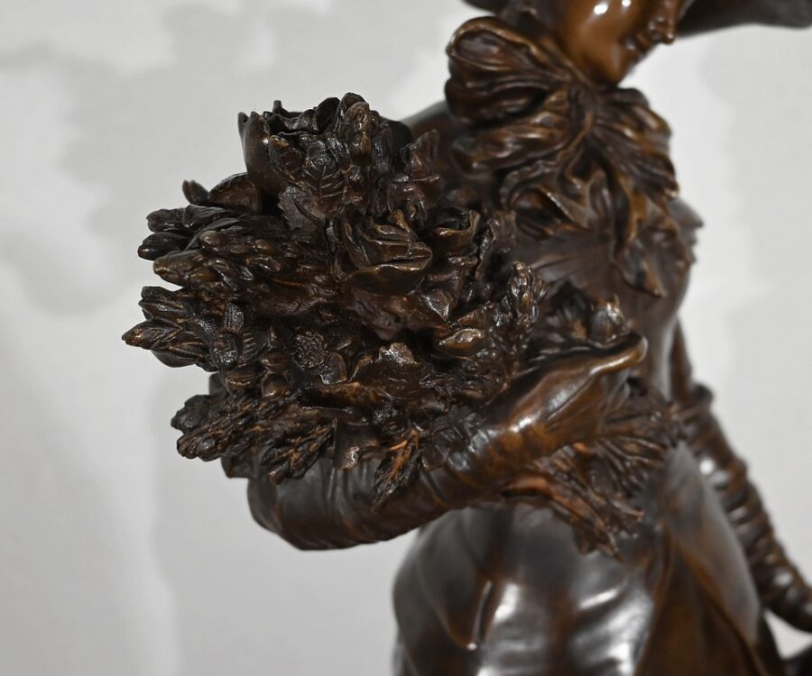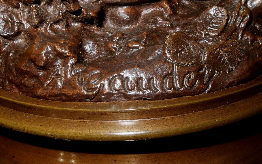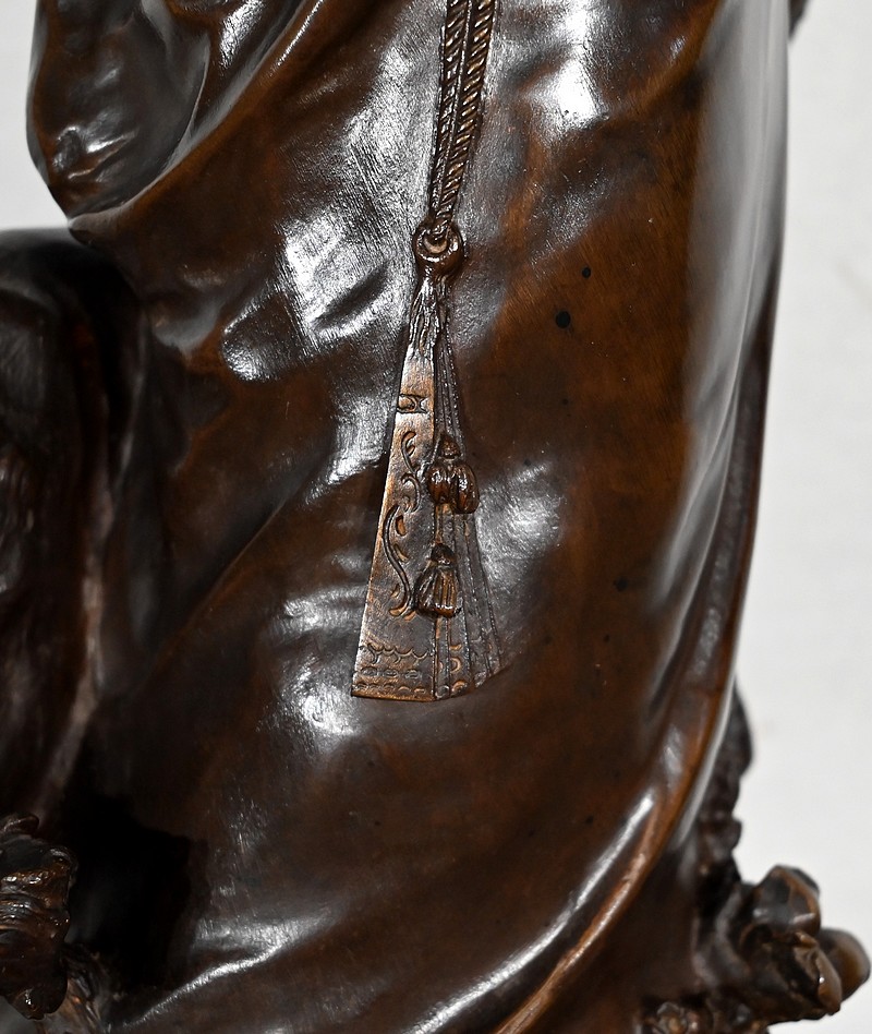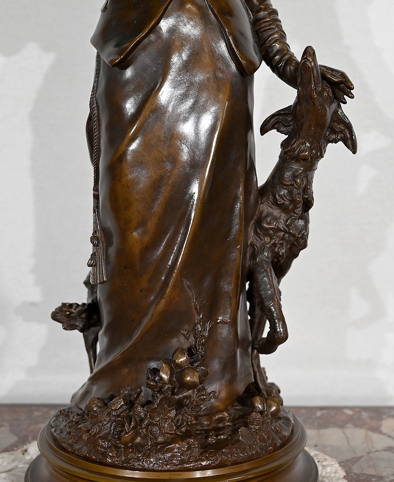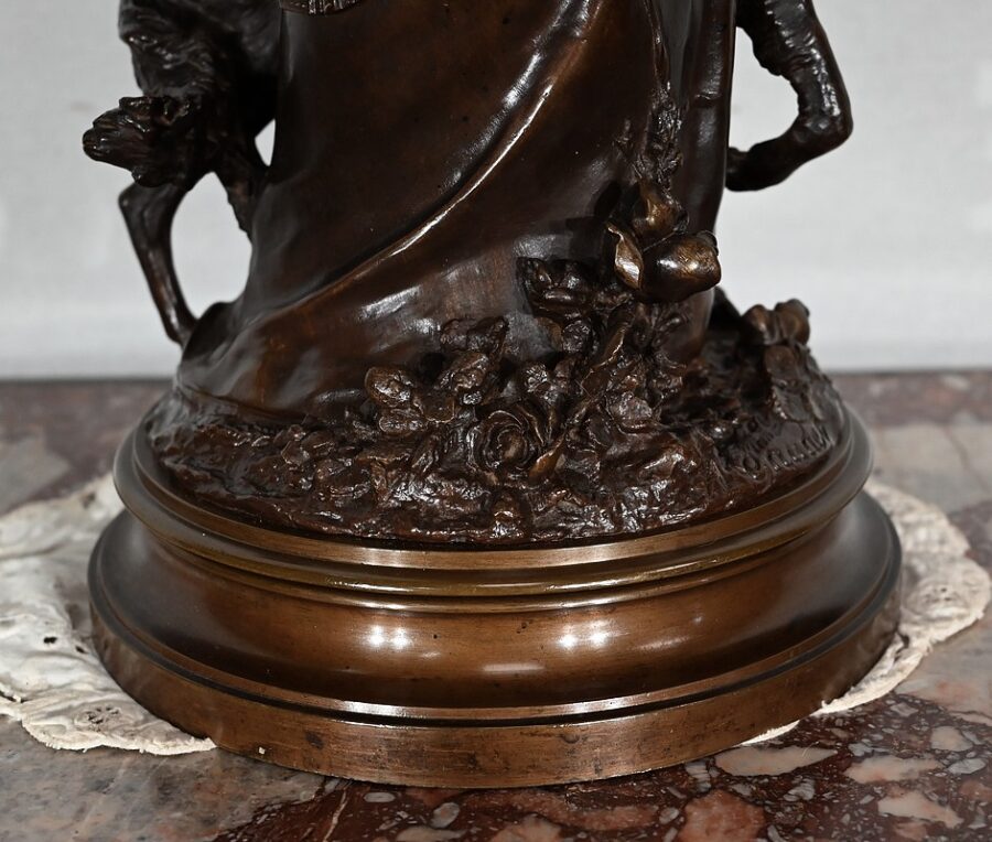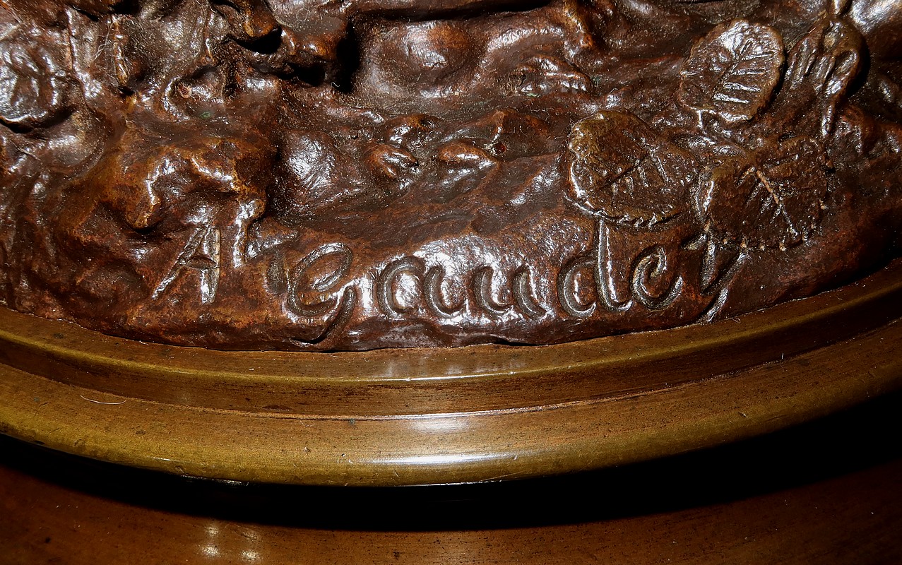 Belle et grande épreuve en bronze à patine brune sur socle tournant, signée Adrien Gaudez (1845-1902).