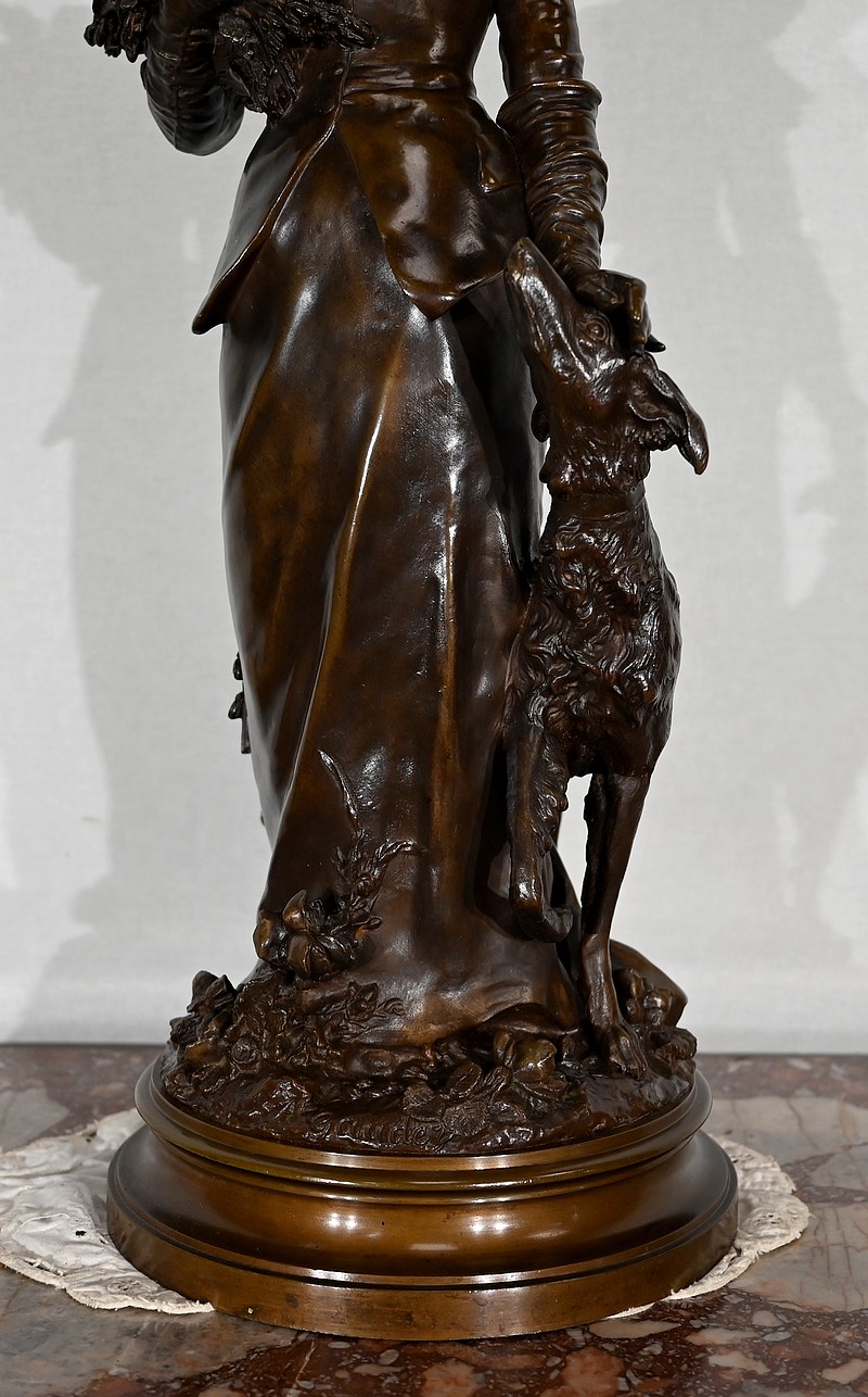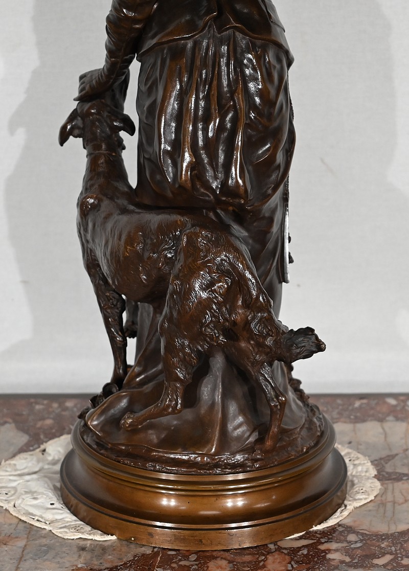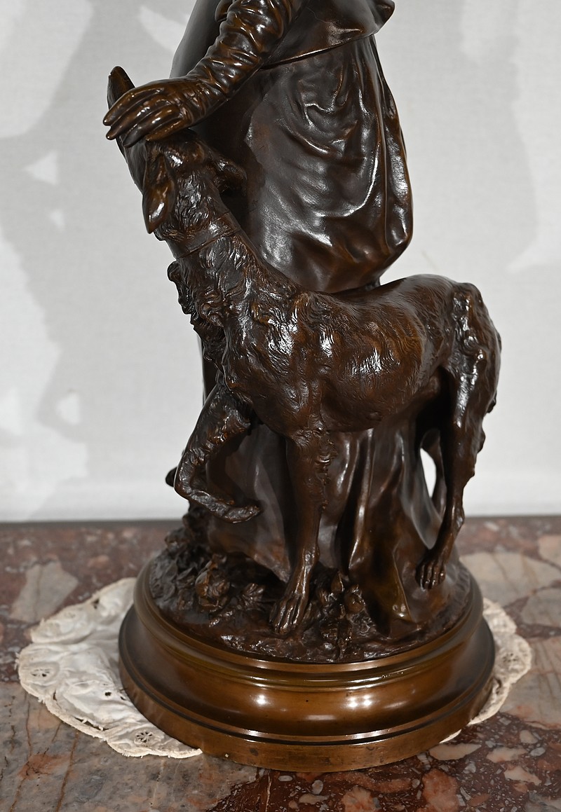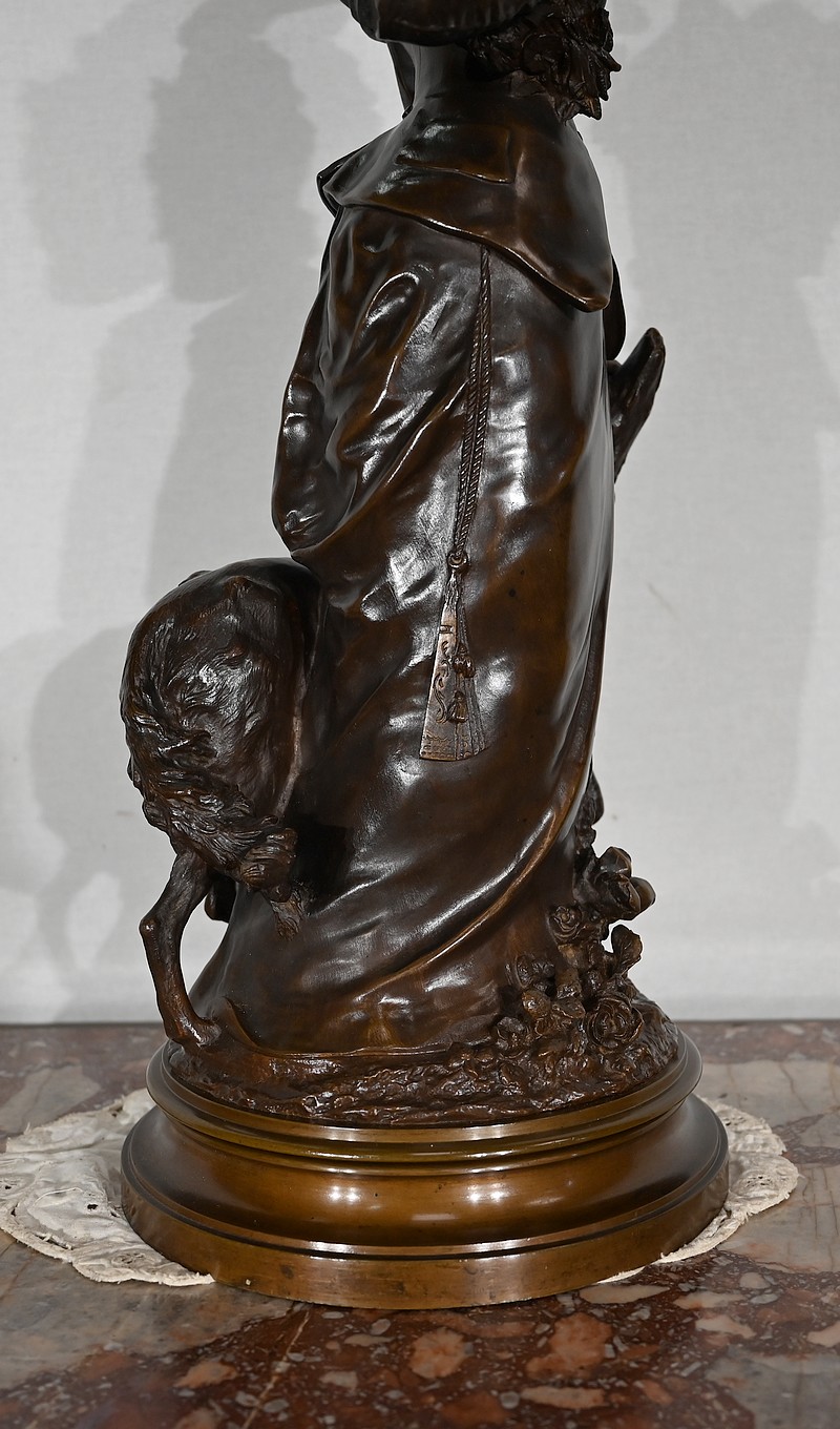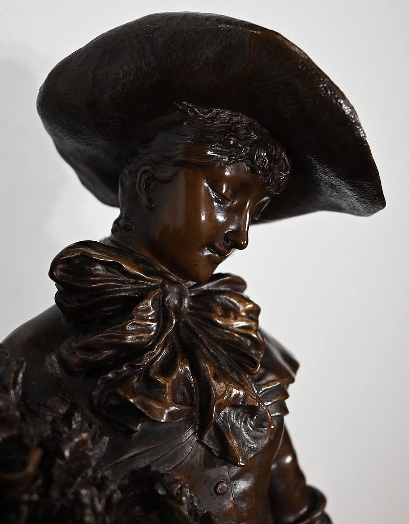 Belle et grande épreuve en bronze à patine brune sur socle tournant, signée Adrien Gaudez (1845-1902).