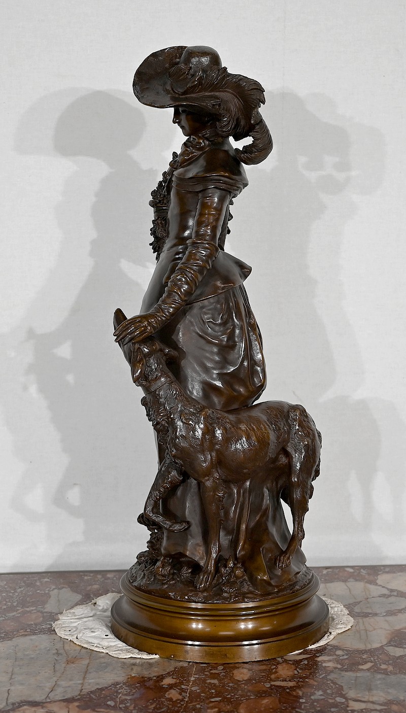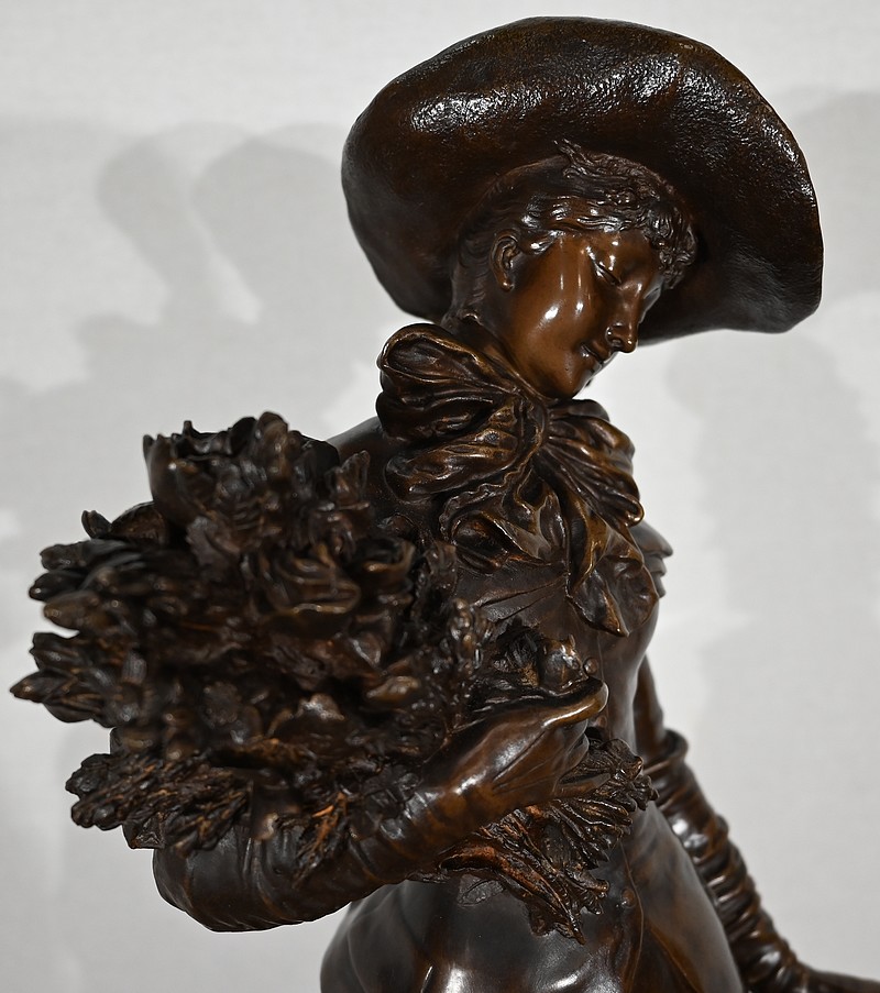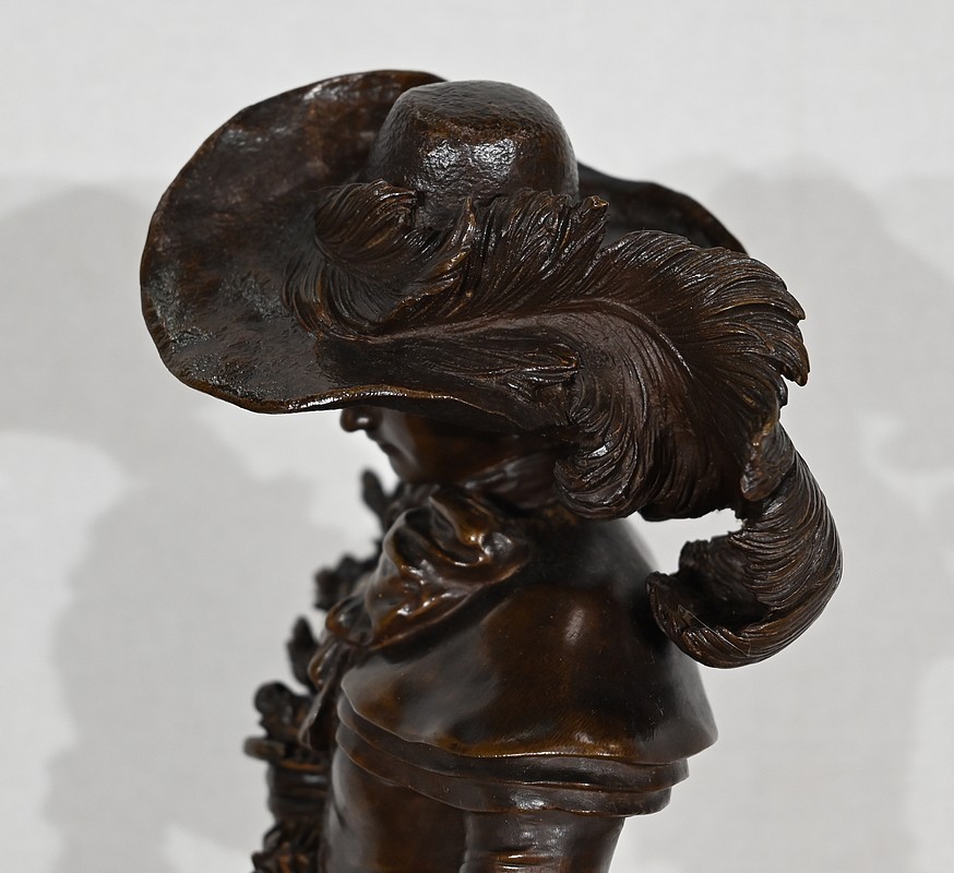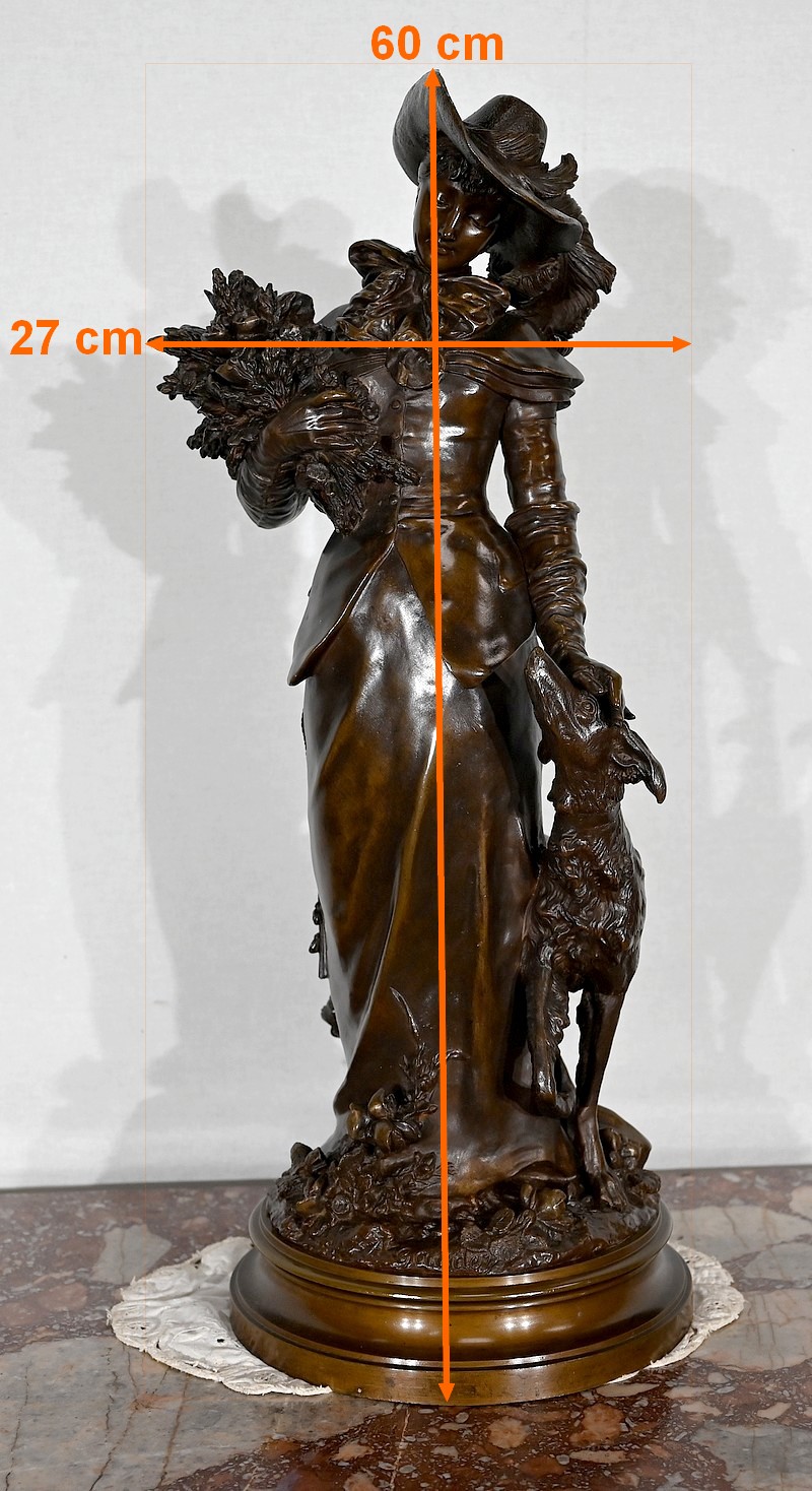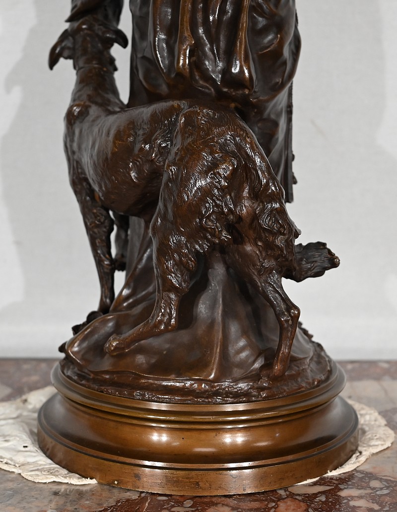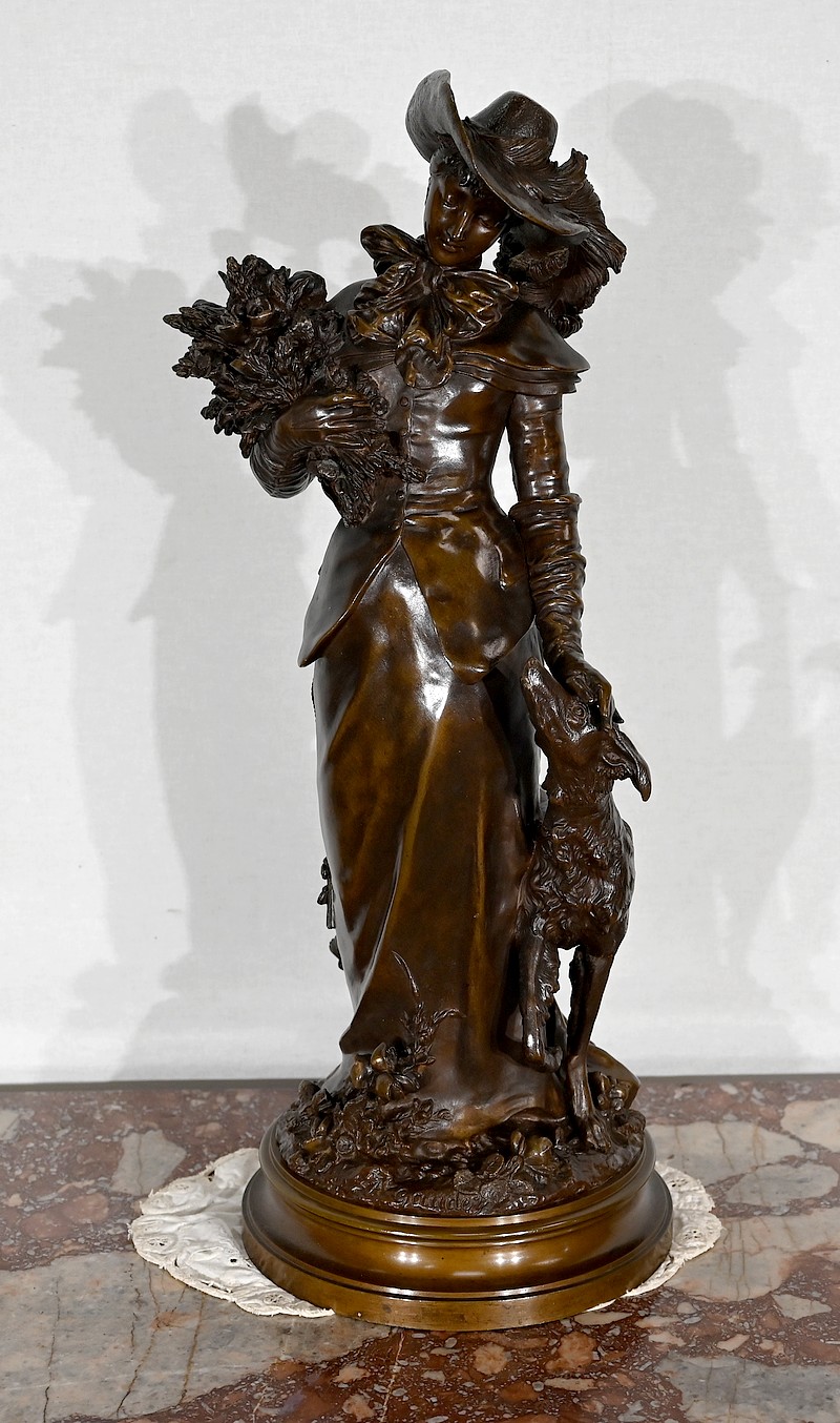 Belle et grande épreuve en bronze à patine brune sur socle tournant, signée Adrien Gaudez (1845-1902).