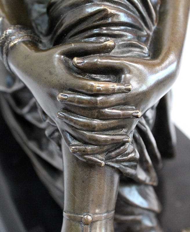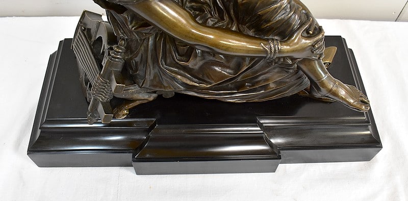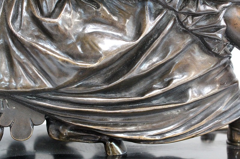 Ce Bronze est remarquable de Réalisme, notamment grâce à la Qualité des détails Vestimentaires et des accessoires. Dans un registre Antique, l’Artiste a su nous transmettre à la fois la Sensualité et la Résolution de la Digne Poétesse du 7ème siècle avant JC. Par ailleurs, le socle parfaitement adapté met admirablement en valeur cette Œuvre.