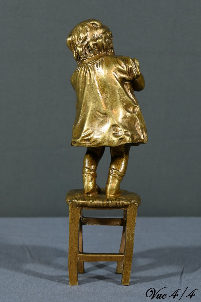 Cette sculpture en bronze à patine dorée, inspirée par l’œuvre du sculpteur espagnol Juan Clara (1875-1958), est une magnifique représentation de l’innocence enfantine.