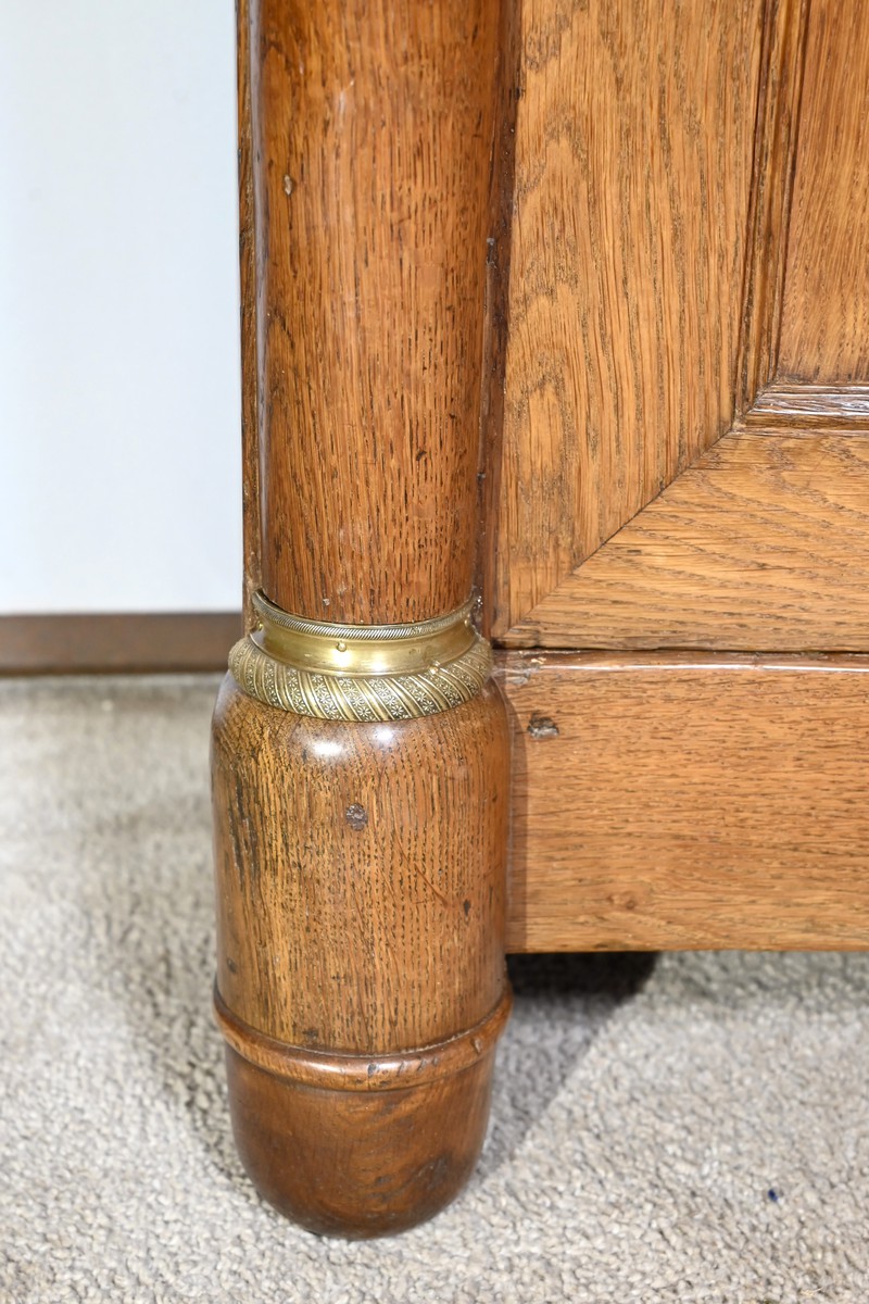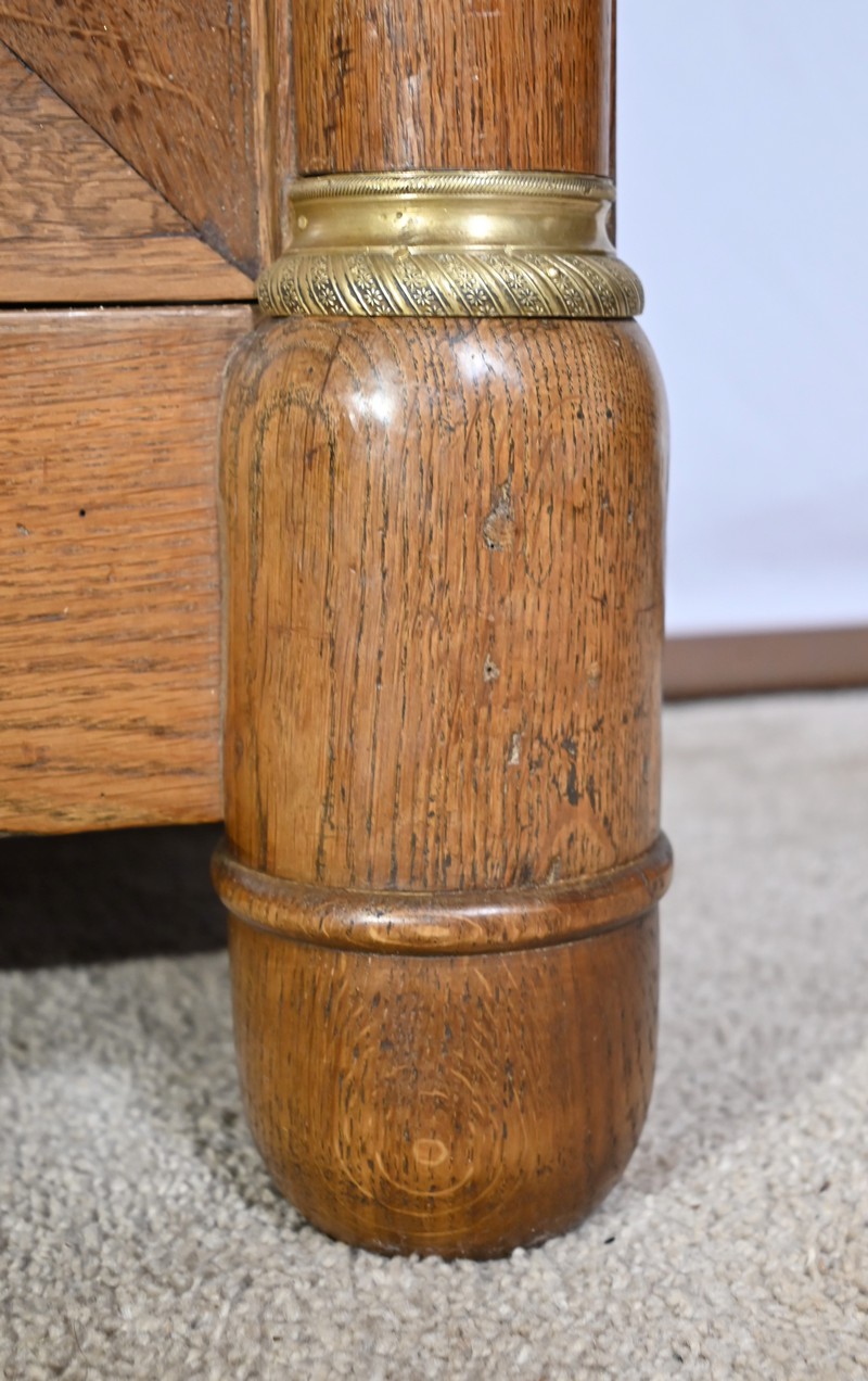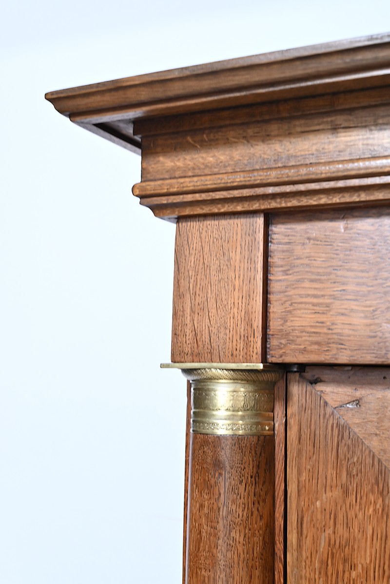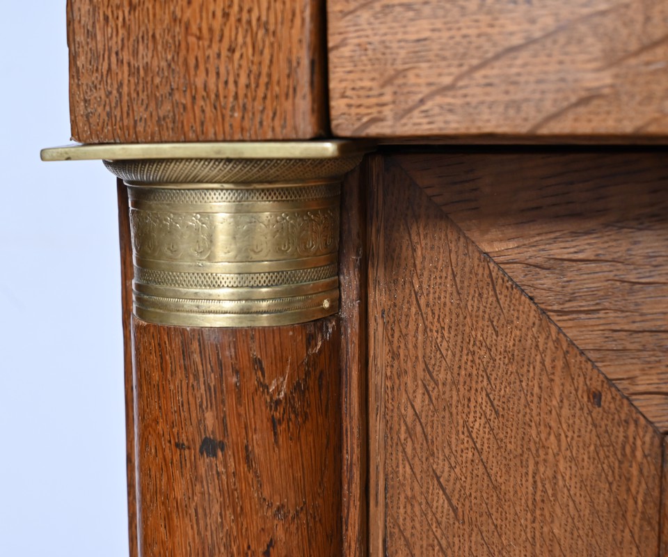Les montants haut et bas en demi-colonne sont habillés de collerettes et de bagues en bronze