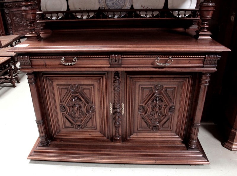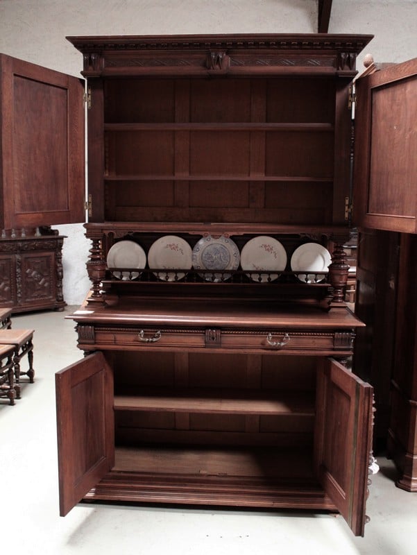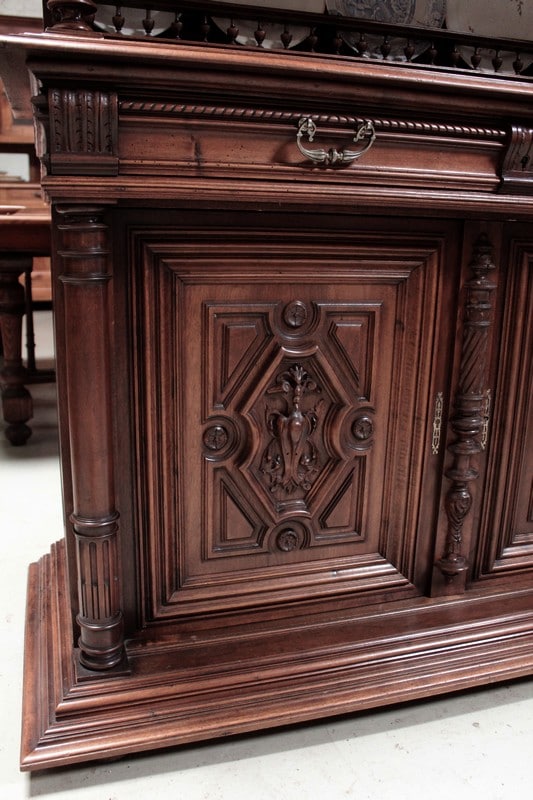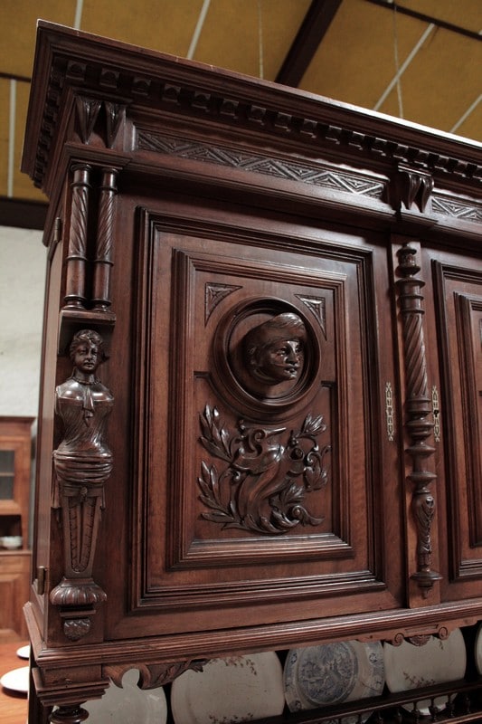 Buffet Deux-corps goût Renaissance en noyer XXe