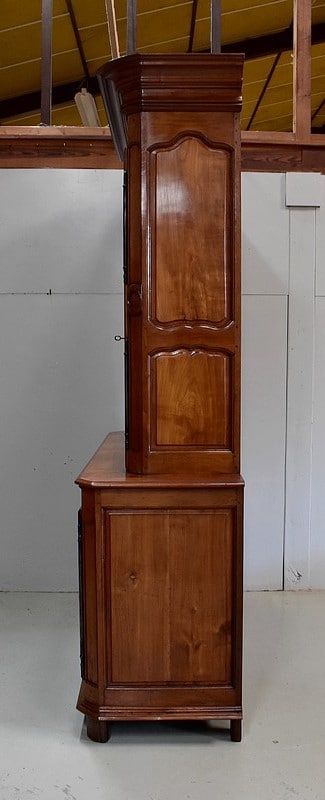 Ce Buffet Deux Corps est sommé d’une importante Double Corniche richement ouvragée et sa traverse basse est moulurée.