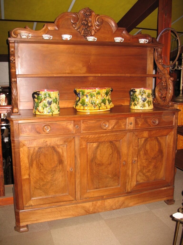 Très beau ‘Saint-Hubert’ 3 portes, 3 tiroirs en Noyer. Décor de corne d’abondance en partie haute. Seconde moitié du XIXe (1880)
