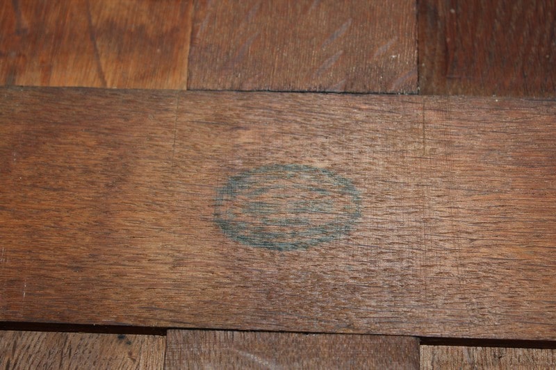 L’arrière, les fonds de tiroirs et les étagères sont en chêne. Pochoir du fabricant illisible. Époque 1900.