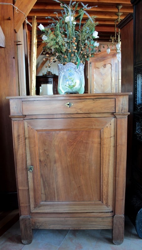 Bahut de propriété Directoire à hauteur d’appui en noyer massif. Il ouvre par 1 tiroir en partie haute et 1 porte. L’intérieur est garni d’une étagère.