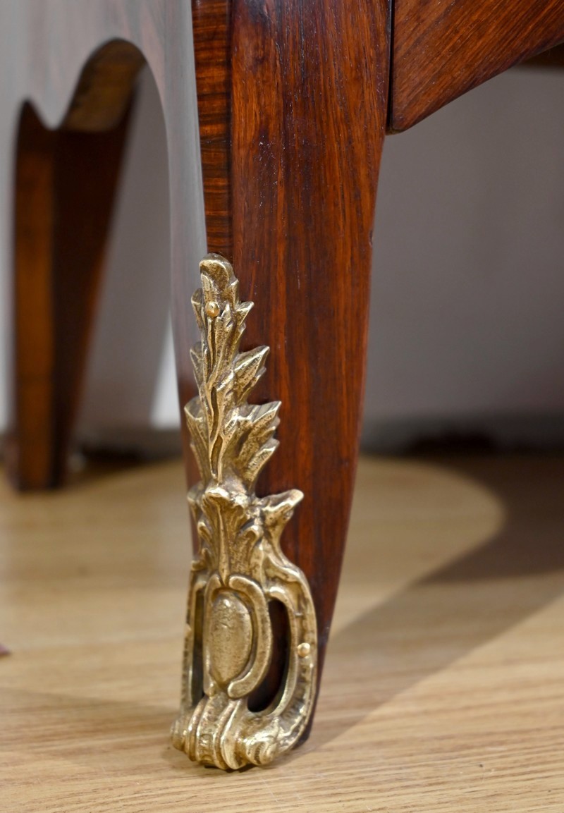 Les montants en palissandre se terminent par des pieds à bosse avec sabots bronze.