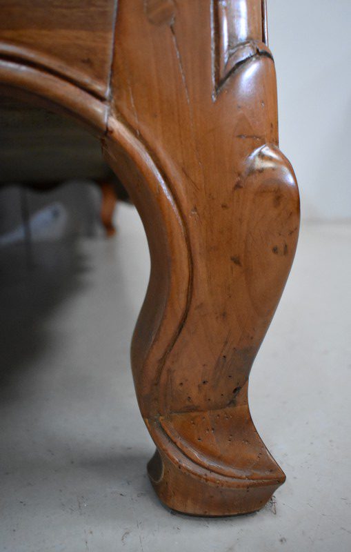 Le Piètement confère à l’ensemble une touche Gracieuse, par la présence de la Traverse à découpe, et celle de Montants en Quart de rond terminés par un Délicat Pied de Biche.