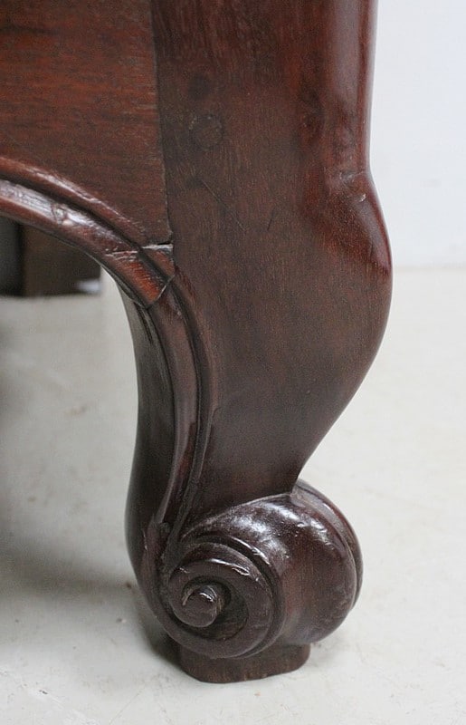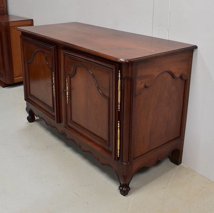 Buffet de Port Régional, en Acajou de Cuba, avec dessus Bois au pourtour à fine rainure. Ce plateau aux angles avant arrondis est constitué de deux planches.