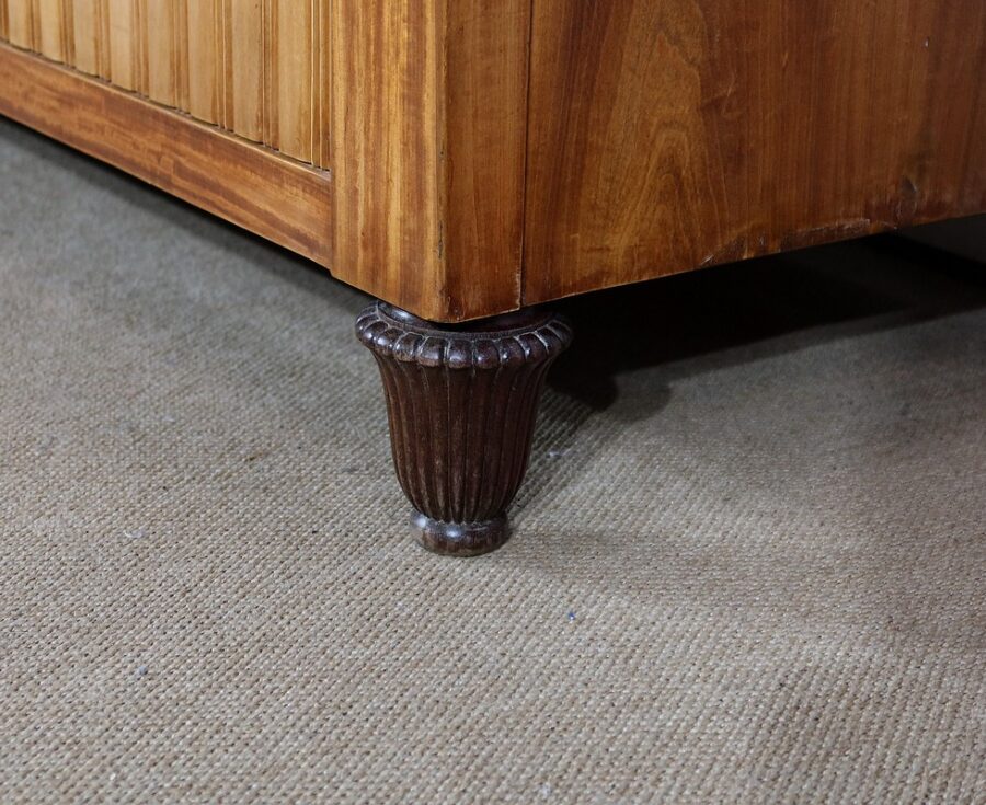 L’ensemble repose sur des pieds toupies à godrons à l’avant et rectangulaires à l’arrière.