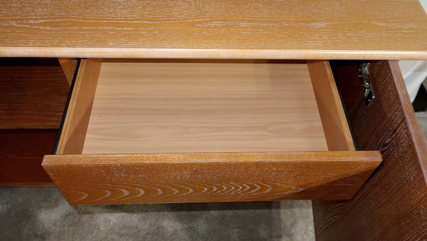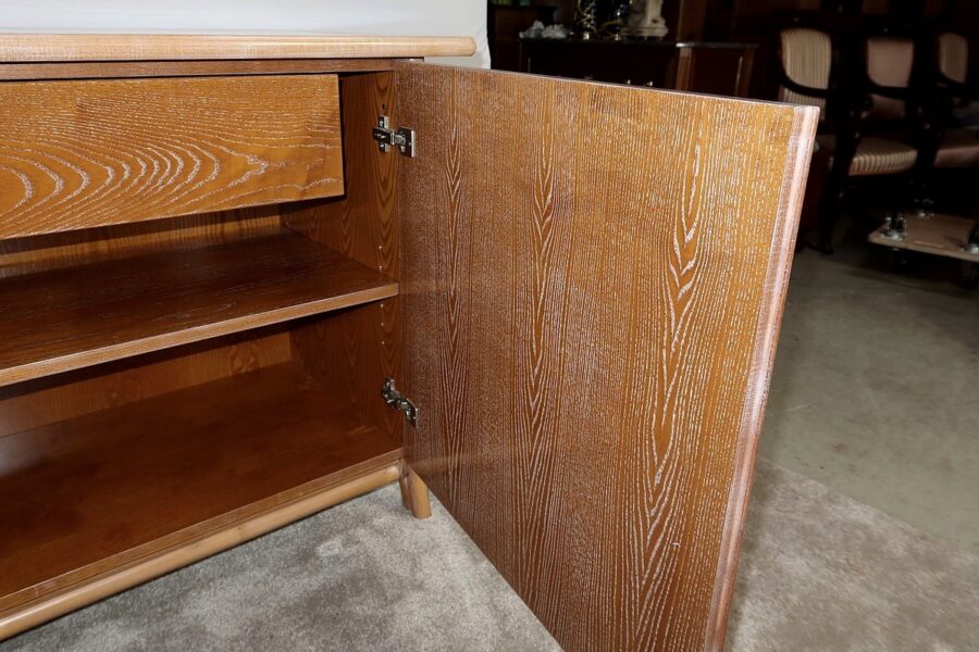 Large buffet en frêne cérusé aux reflets orangés de la Maison Gasparucci Italo.