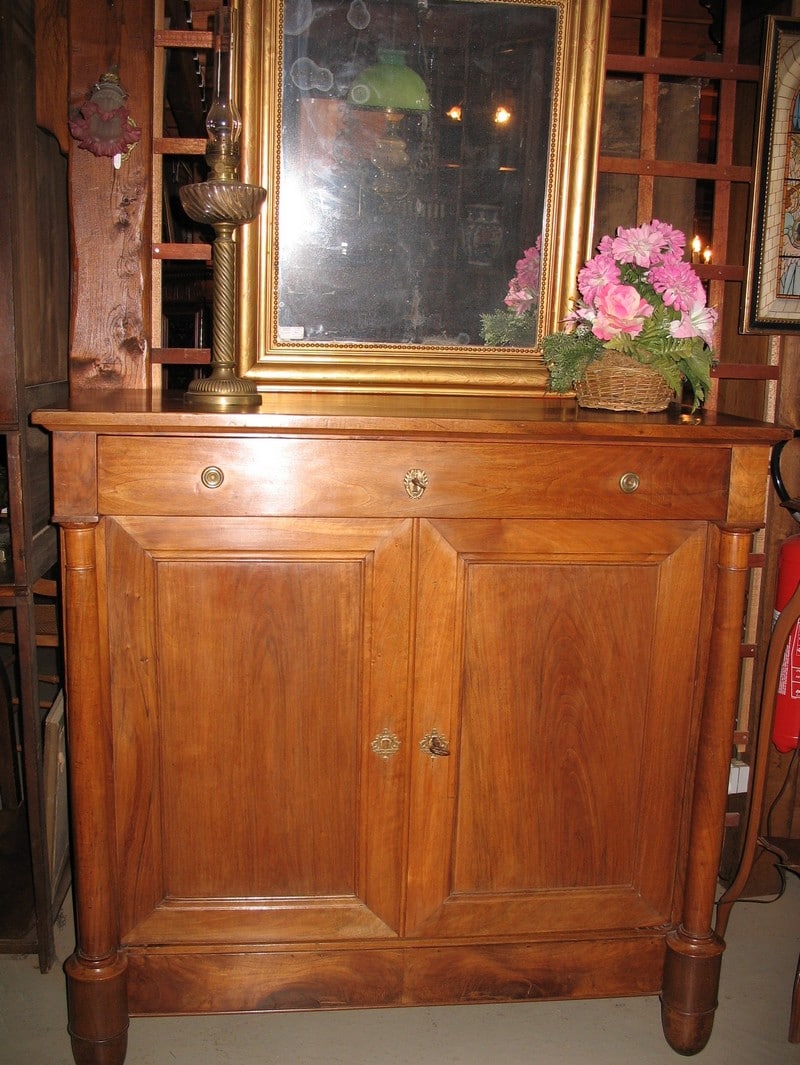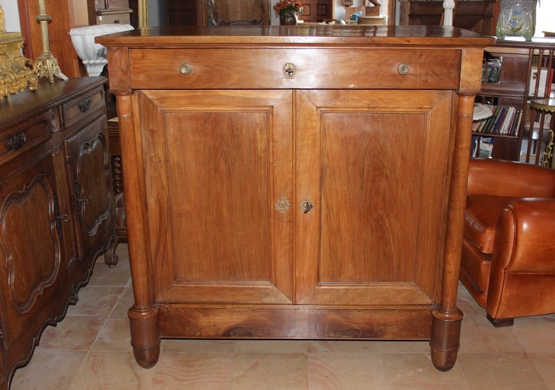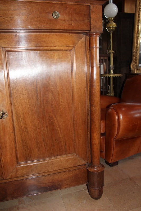 Buffet haut d’appui Empire en Noyer à colonnes détachées ouvrant par 2 portes et 1 grand tiroir.