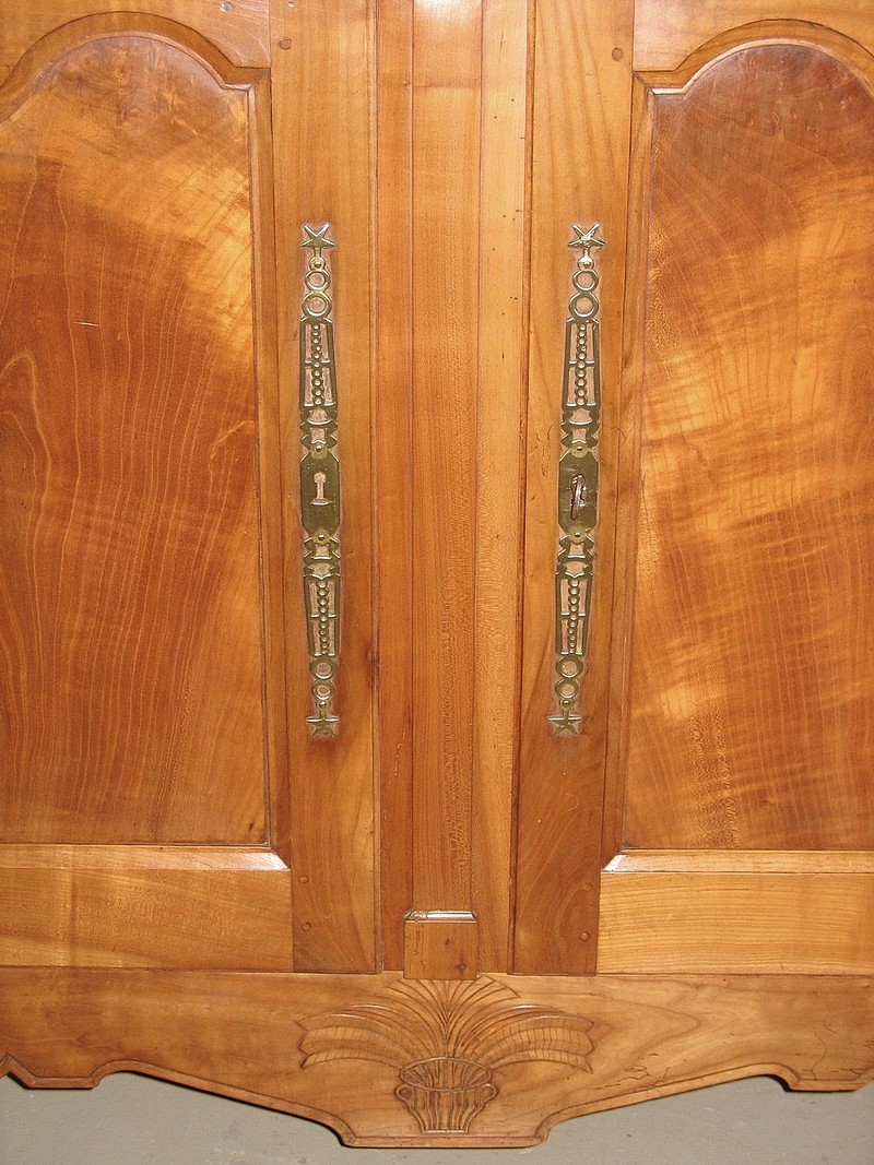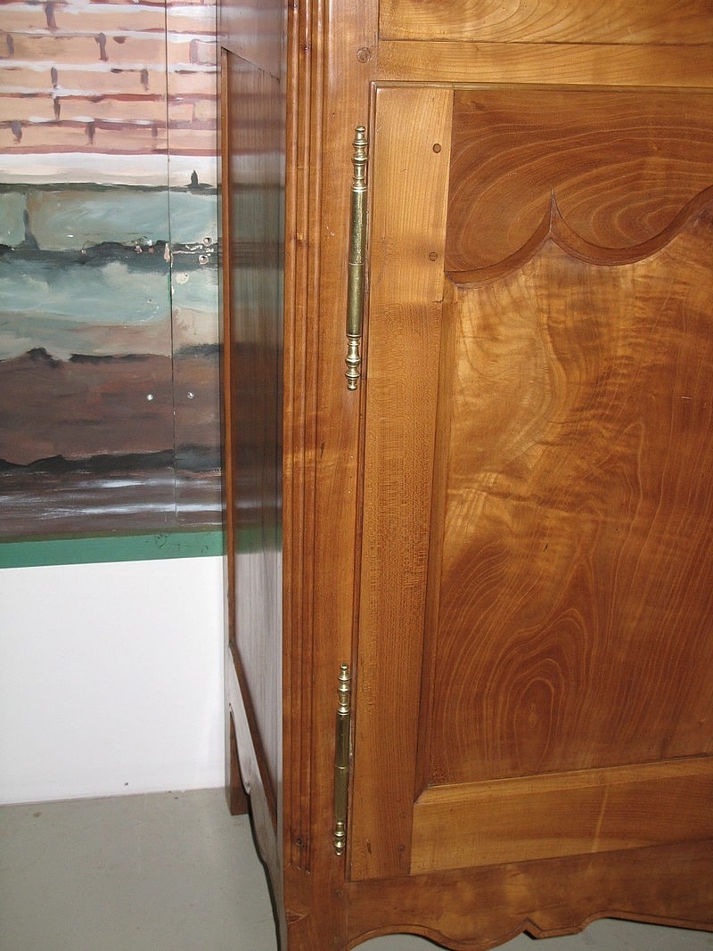 Pieds cambrés, entrées de serrure et fiches de cuivre. L’intérieur est garni d’une étagère avec 2 tiroirs (dont un petit fermant à clé). Pays de Loire. Époque : Seconde moitié du XIXe