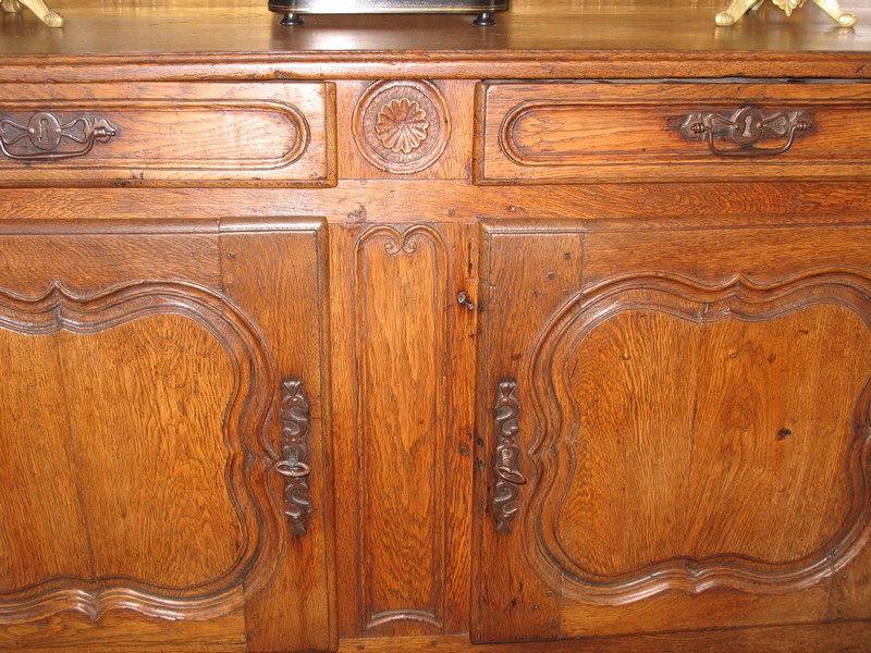 Buffet Louis XV de propriété, 2 portes médaillon et 2 tiroirs en chêne. Belle facture du XVIIIe