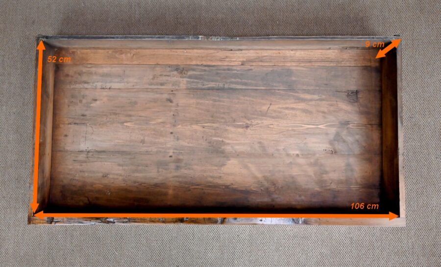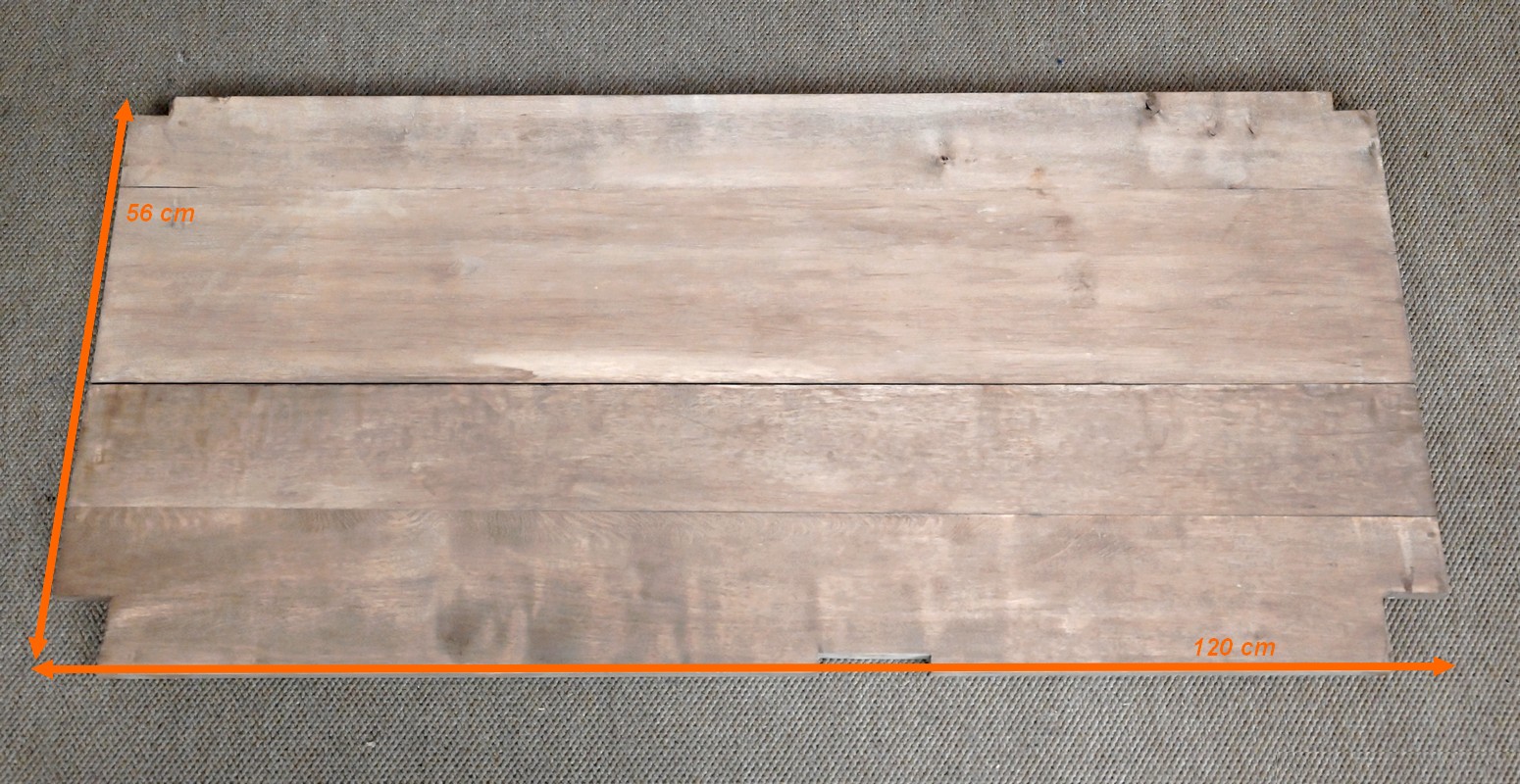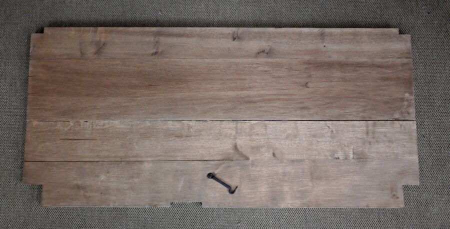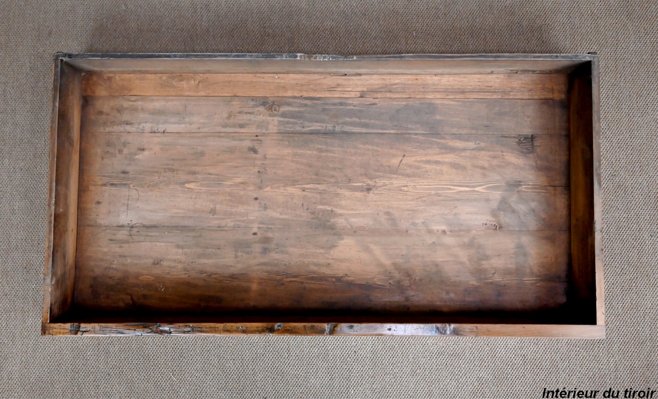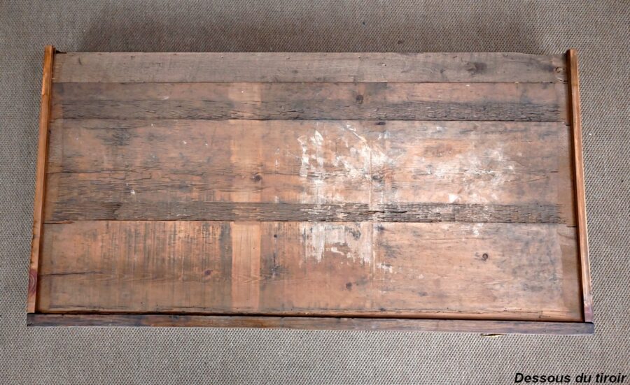 Le dessus à encadrement est composé de trois planches bien jointives sans élément de rebouchage en composite.