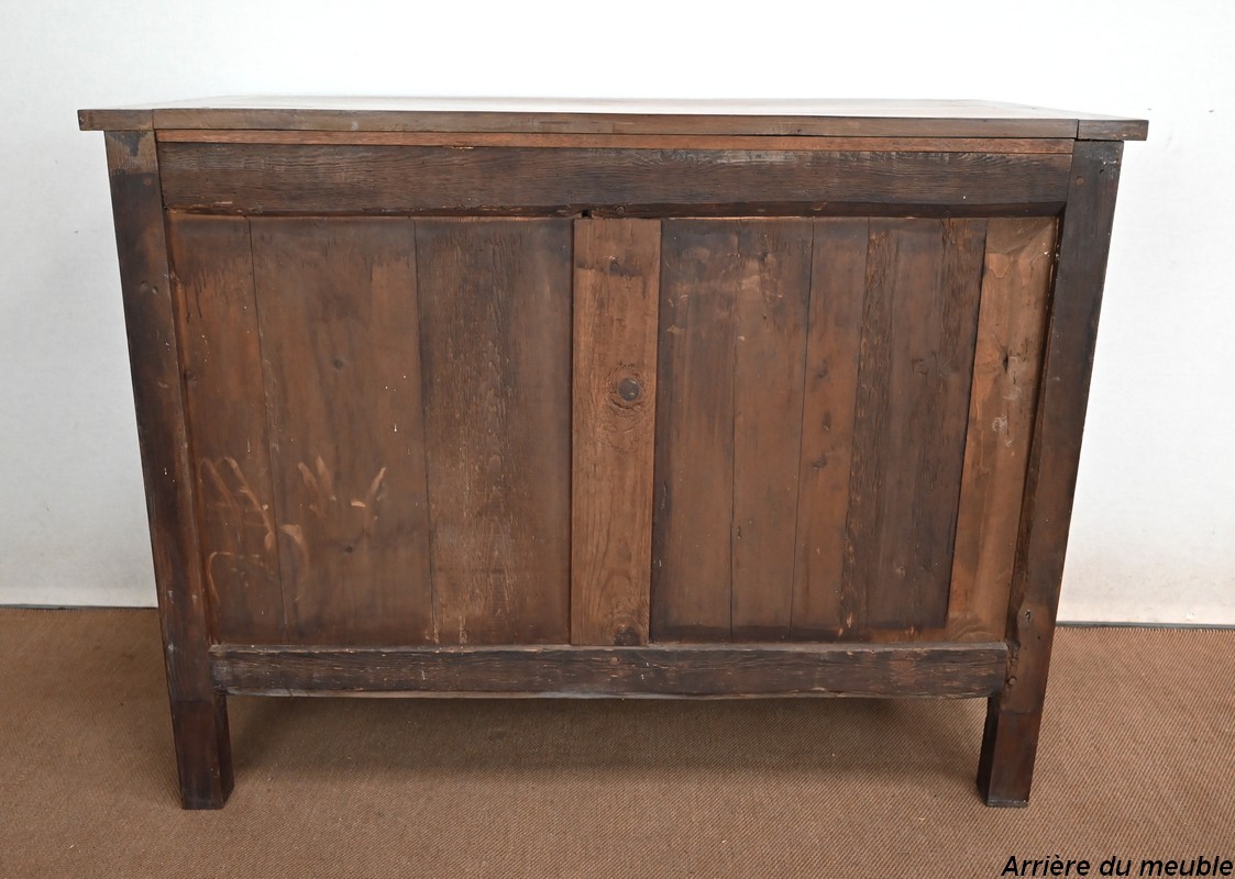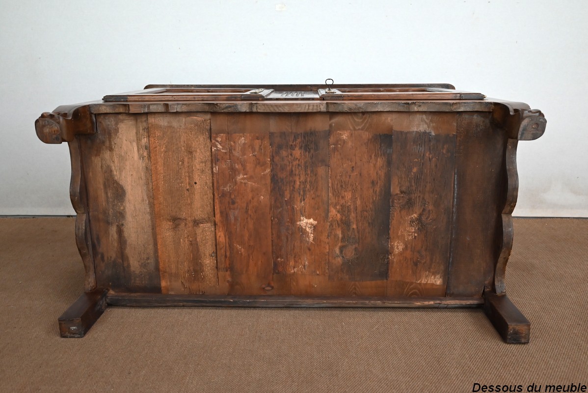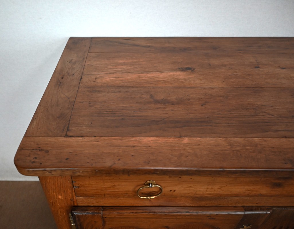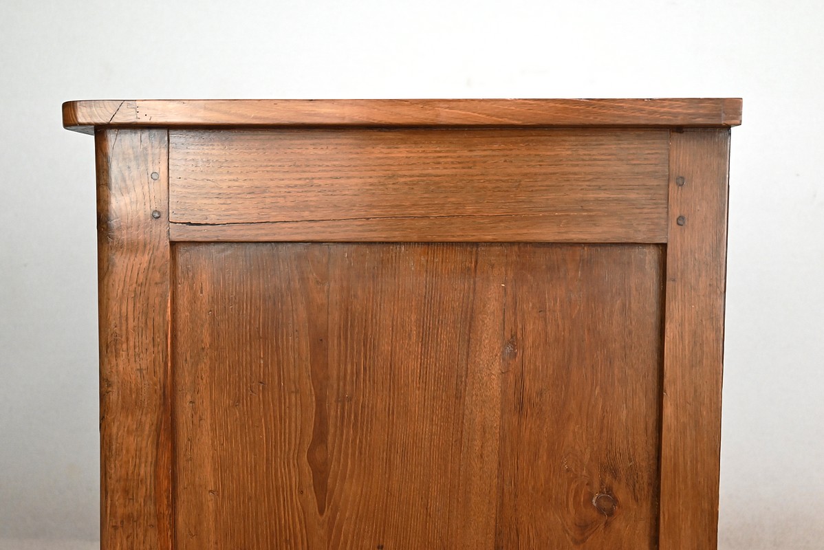 Le dessus à encadrement est composé de trois planches bien jointives sans élément de rebouchage en composite.
