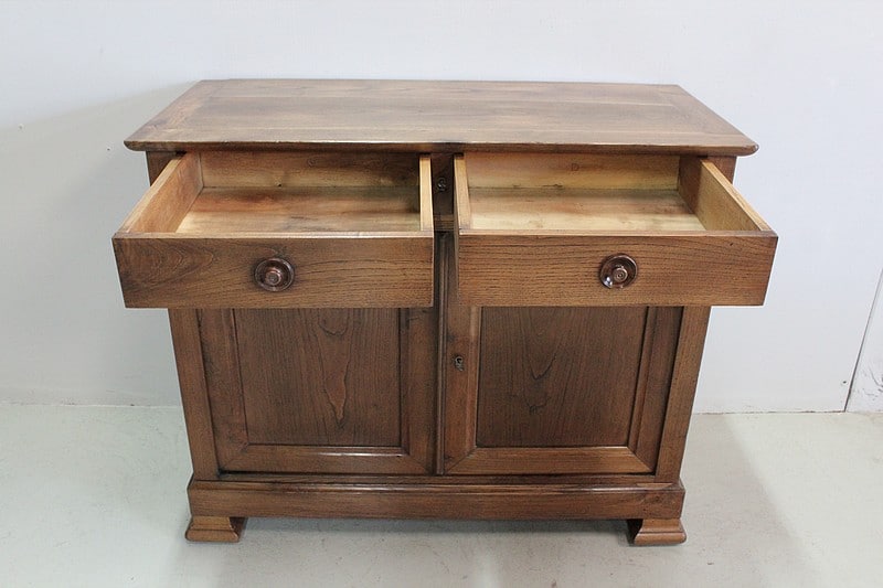 Il ouvre en dessous par 2 portes panneautées et moulurées fermant également à clef.