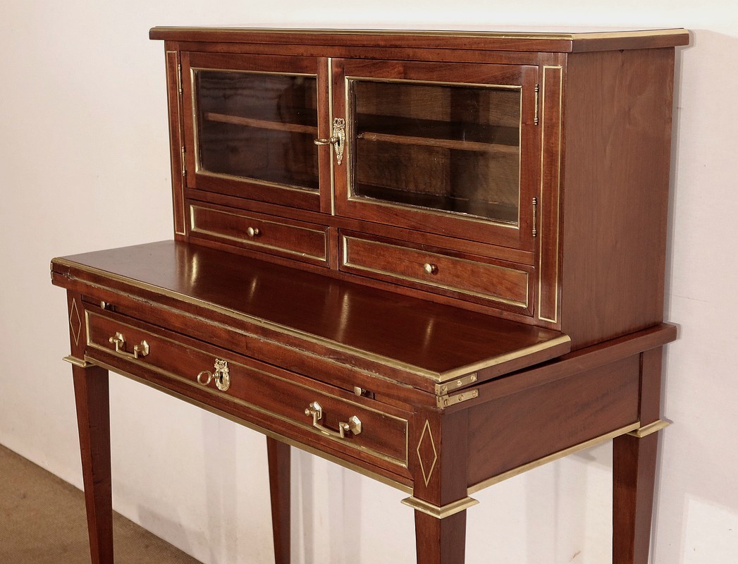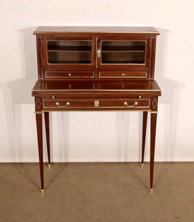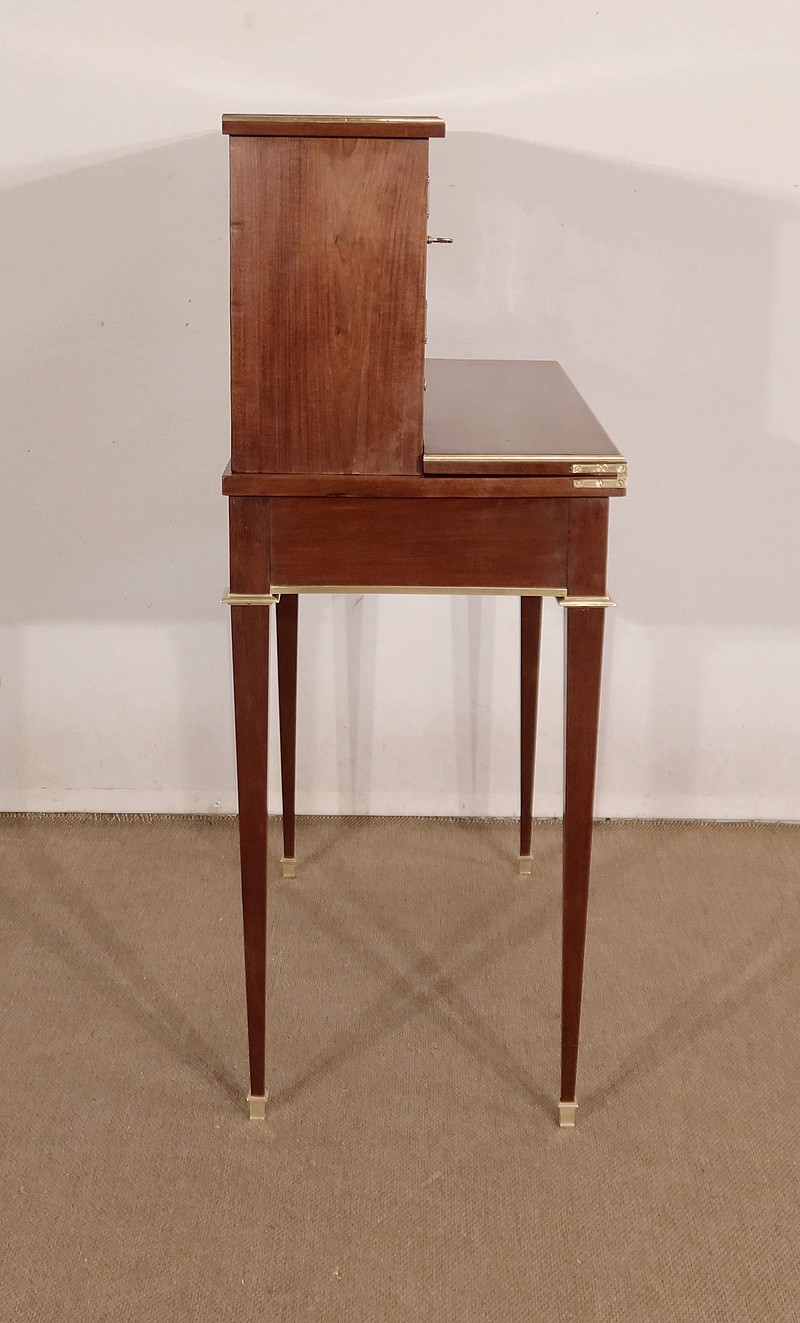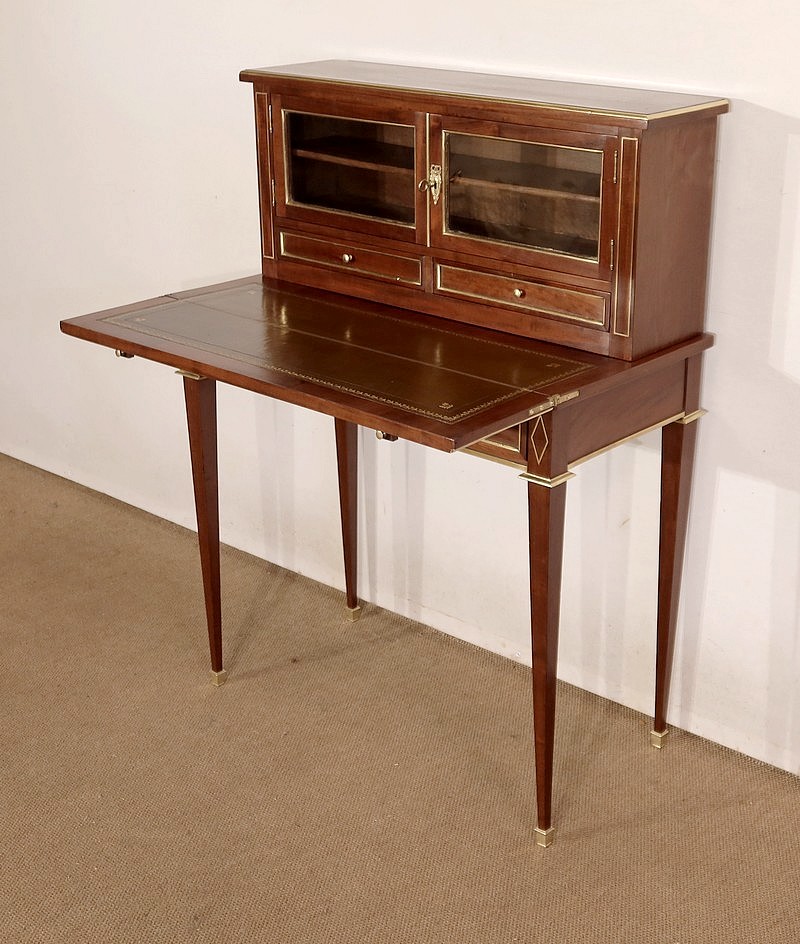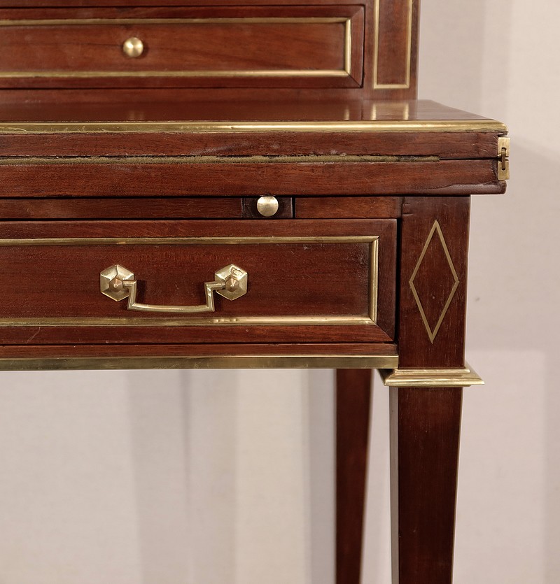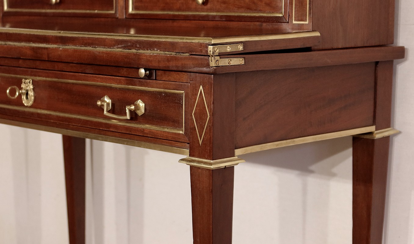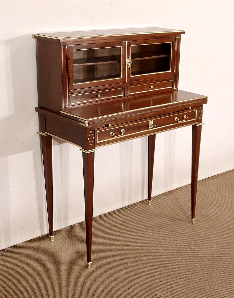 Meuble de dame dit « Bonheur-du-jour » dans le style Louis XVI, en acajou massif et placage d’acajou.