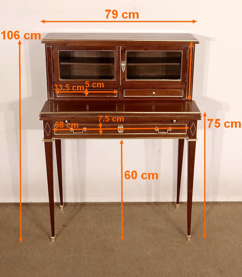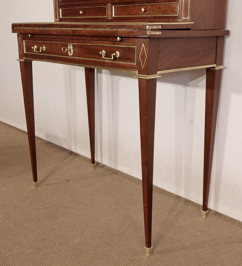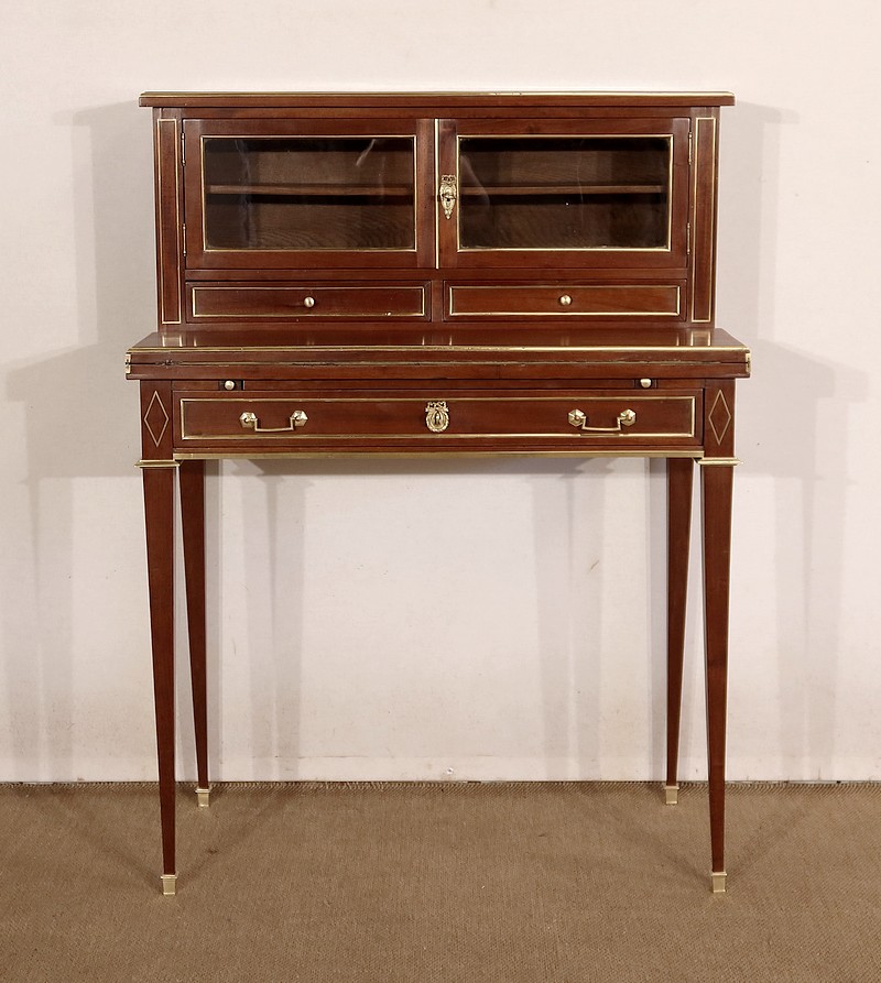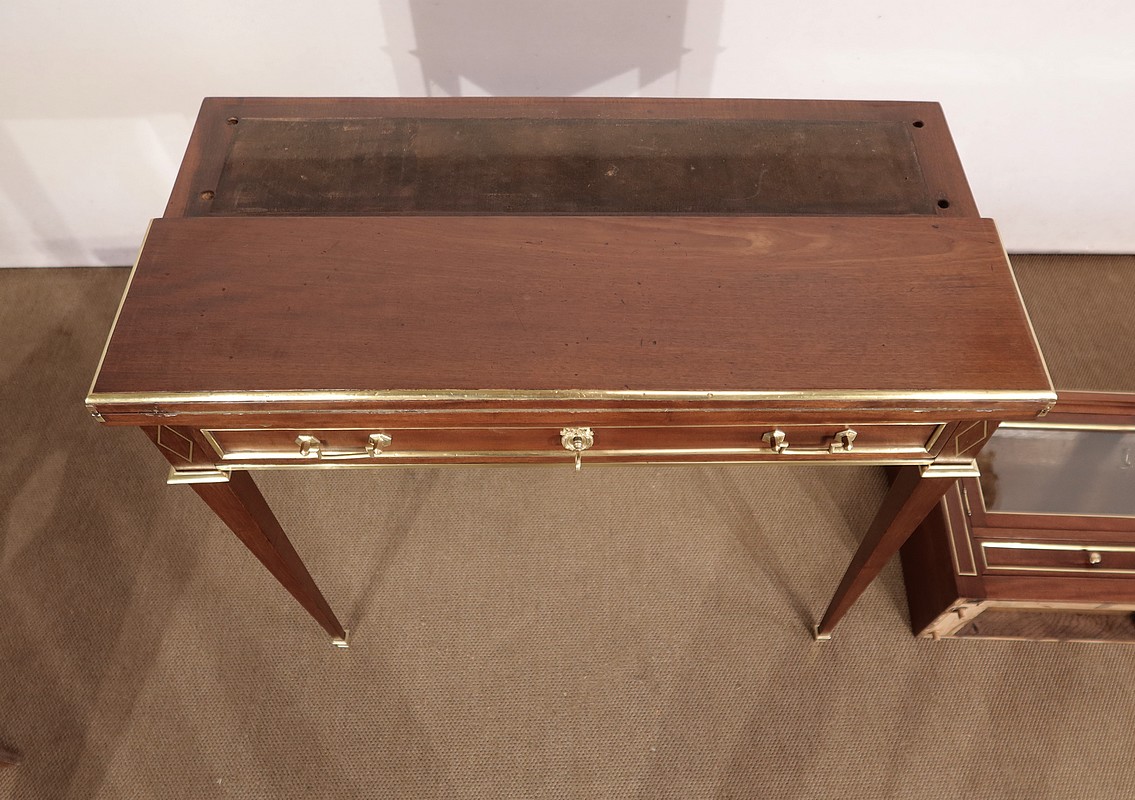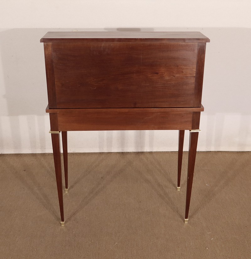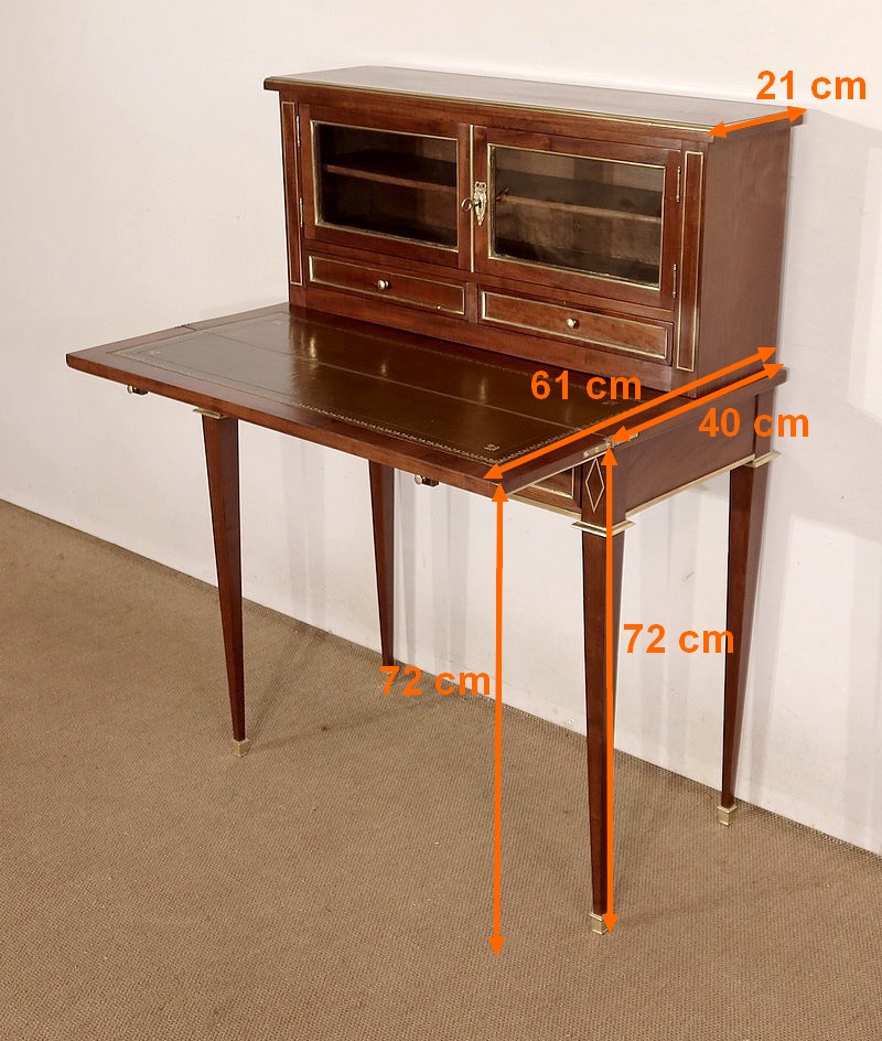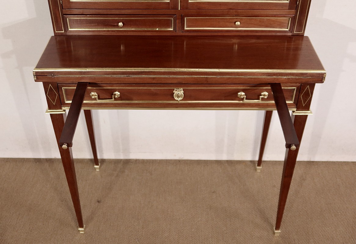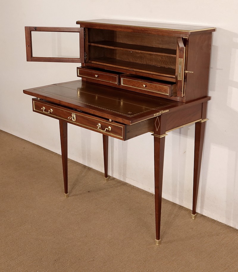 Meuble de dame dit « Bonheur-du-jour » dans le style Louis XVI, en acajou massif et placage d’acajou.