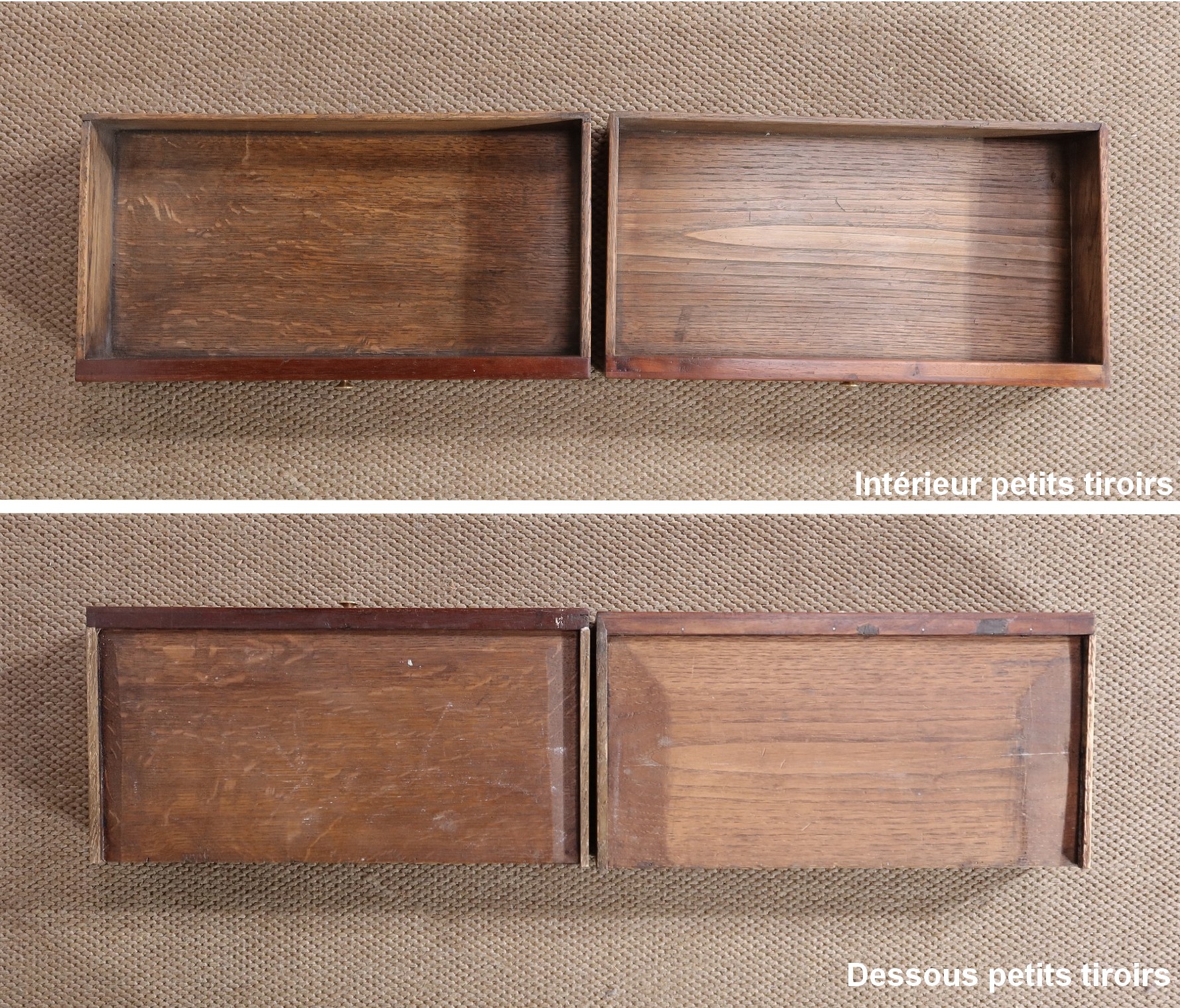 Fonds et côtés de tiroirs en chêne.