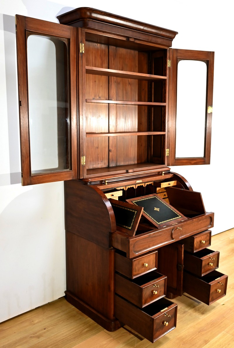 Ce bureau cylindre/bibliothèque plaira pour sa rareté et ses nombreuses fonctionnalités.