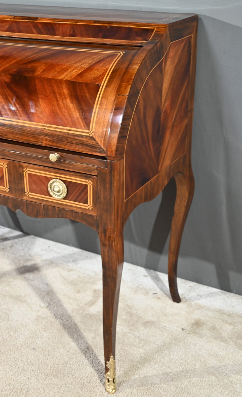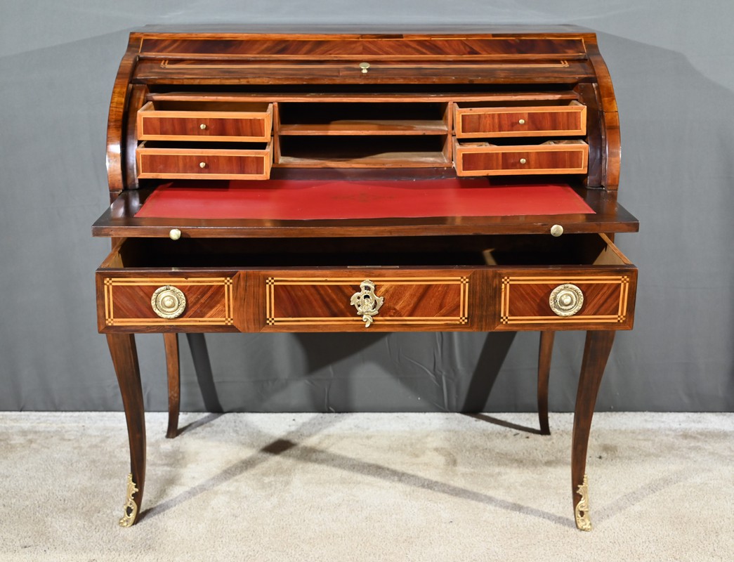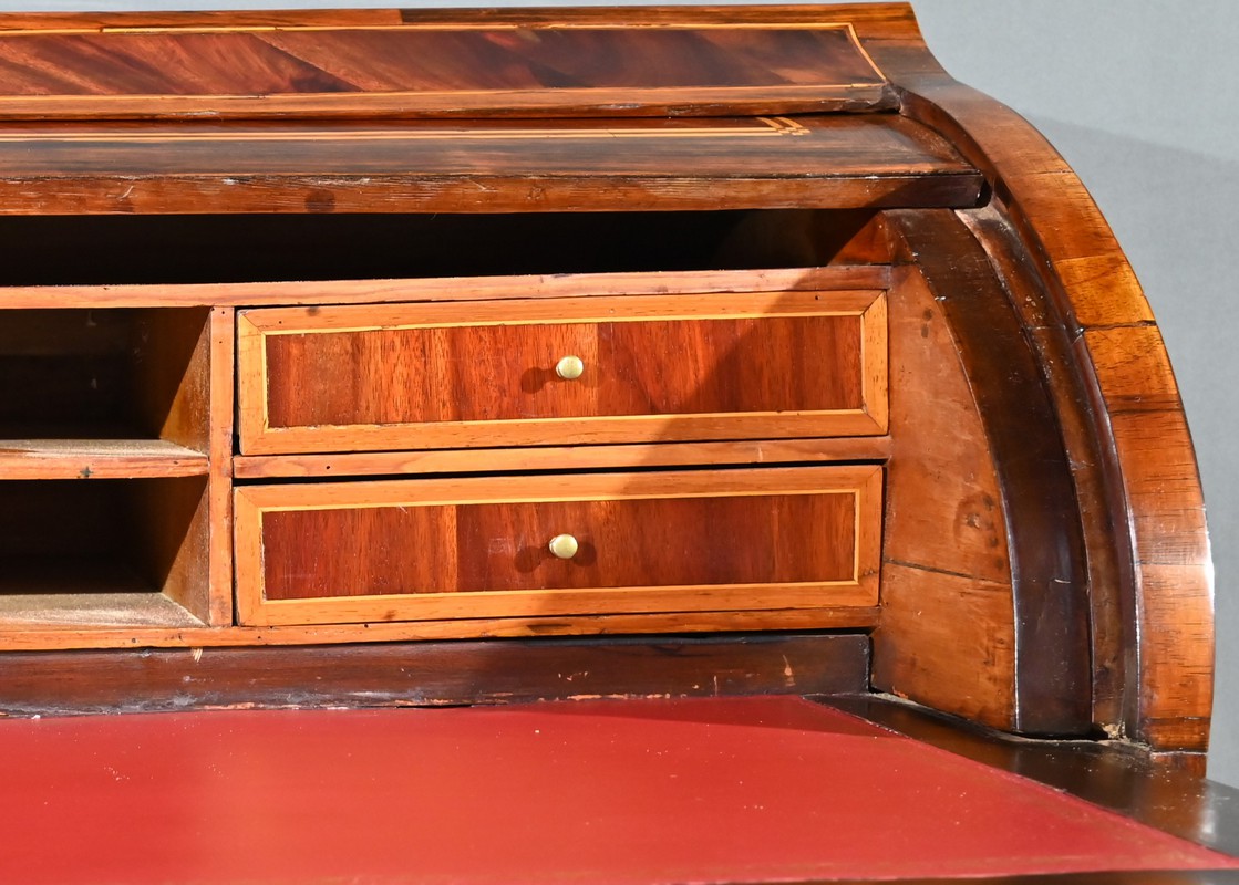 Ce bureau cylindre n’est pas un simple meuble fonctionnel et bien dimensionné, c’est une pièce de collection qui témoigne du savoir-faire artisanal des ébénistes et de l’esthétique de son époque.