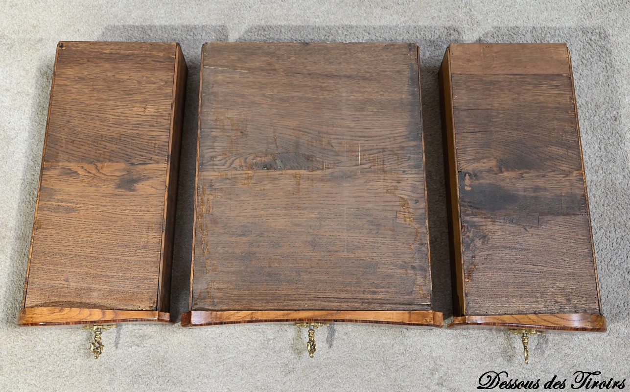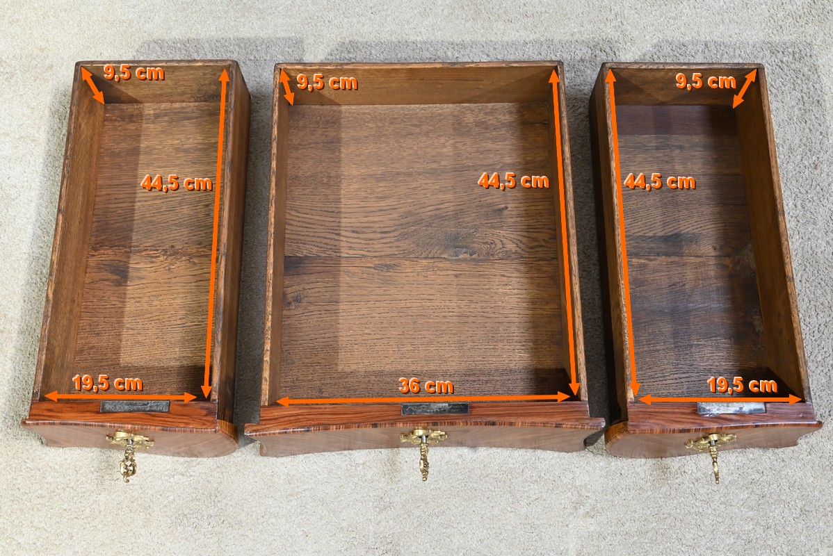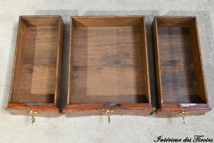 Ces tiroirs sont munis de serrures d’origine fonctionnelles avec entrée bronze et clé.