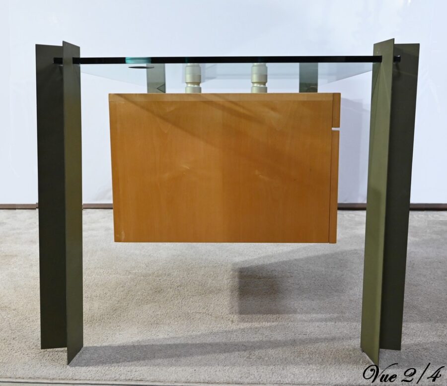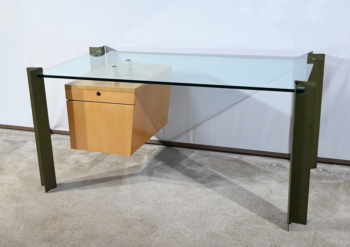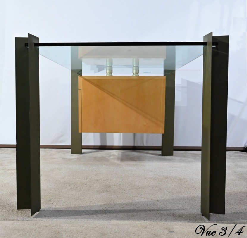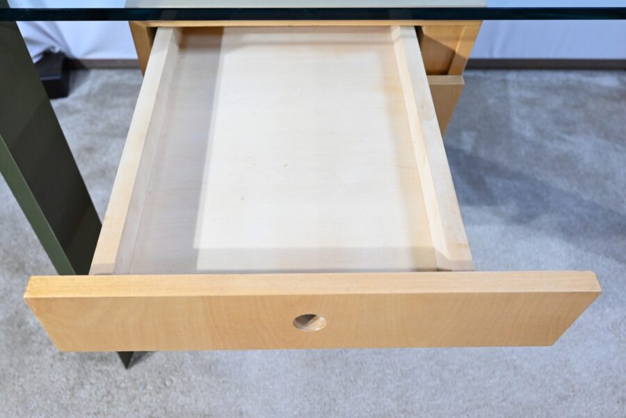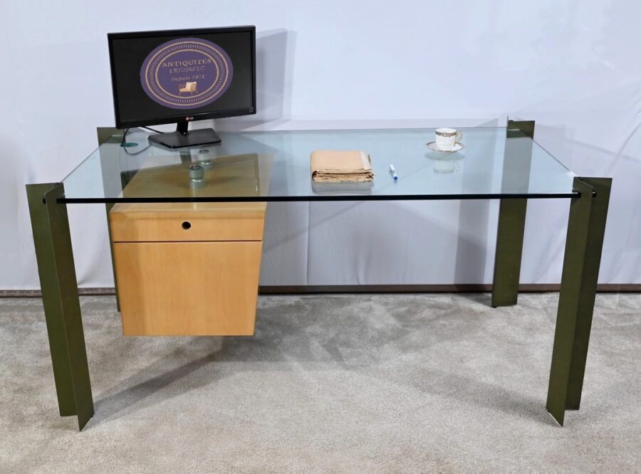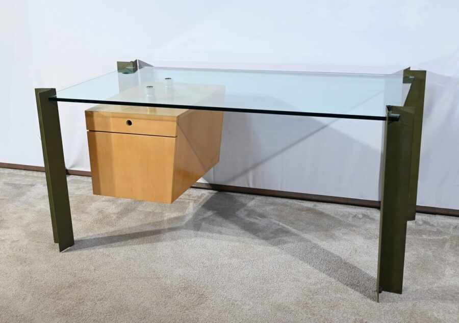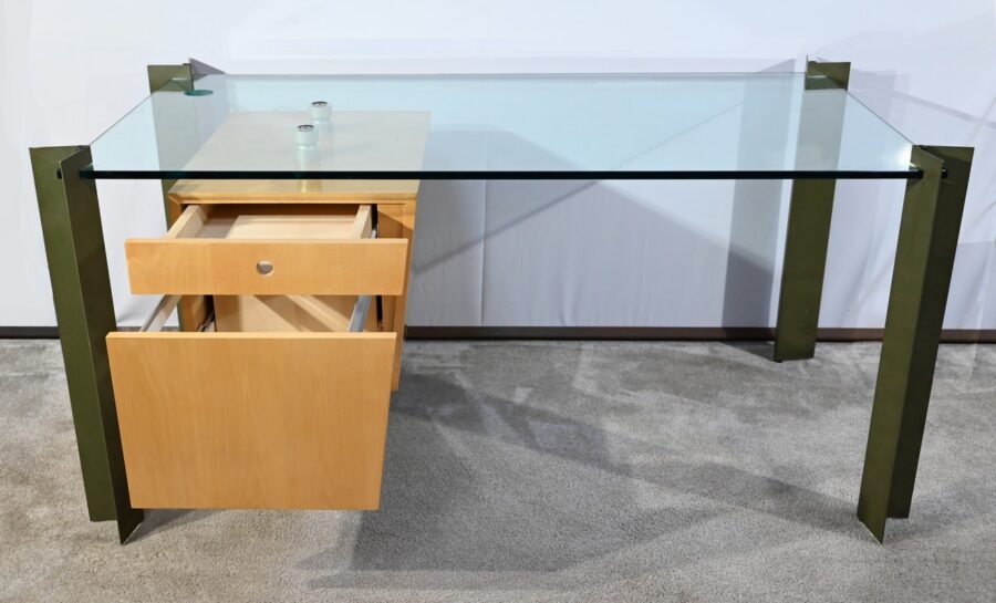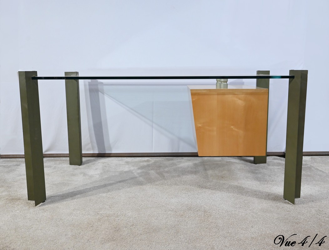 Bureau en Verre et Sycomore, par J.Rondineau pour le Cabinet XI Design – Fin XXe