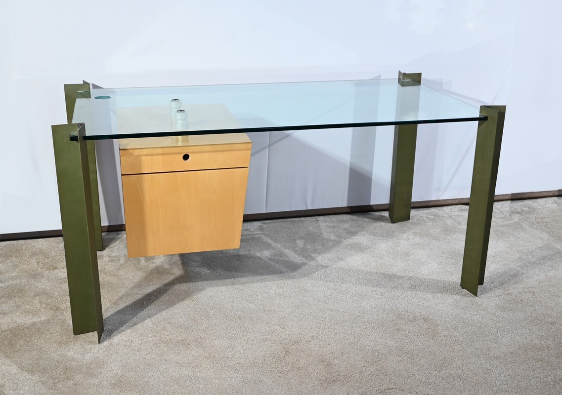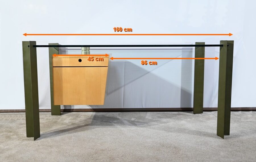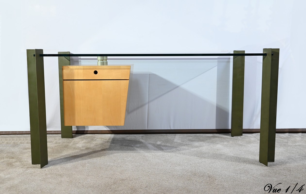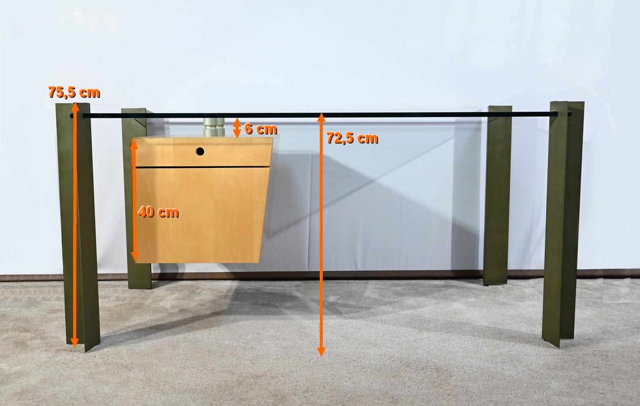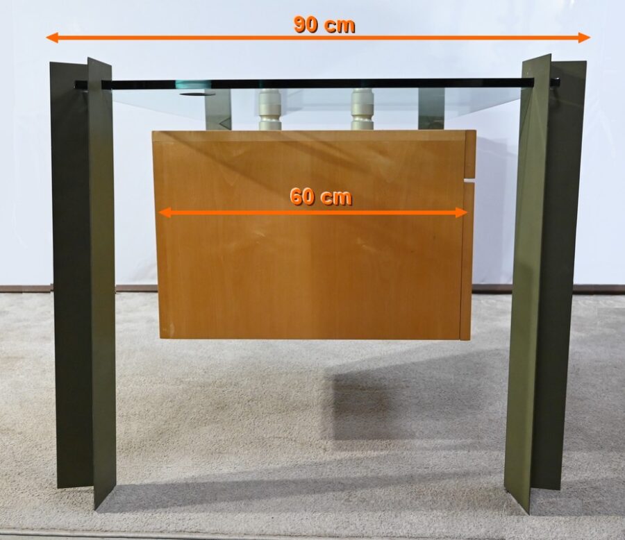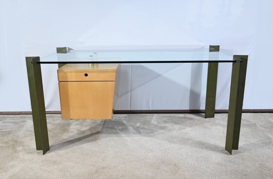Bureau en Verre et Sycomore, par J.Rondineau pour le Cabinet XI Design – Fin XXe