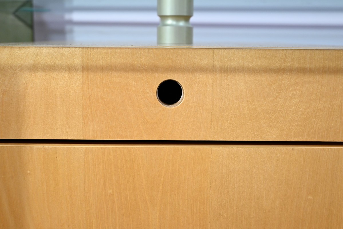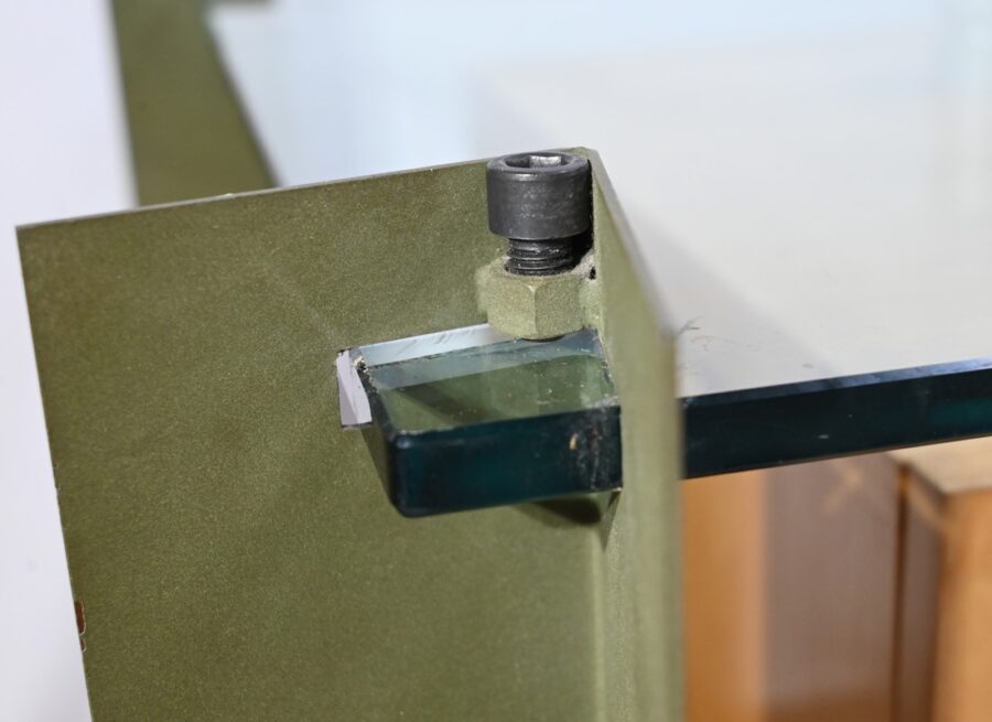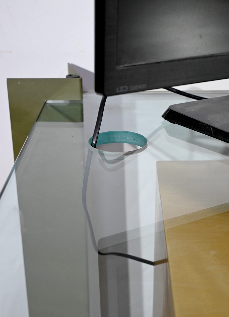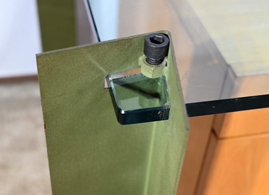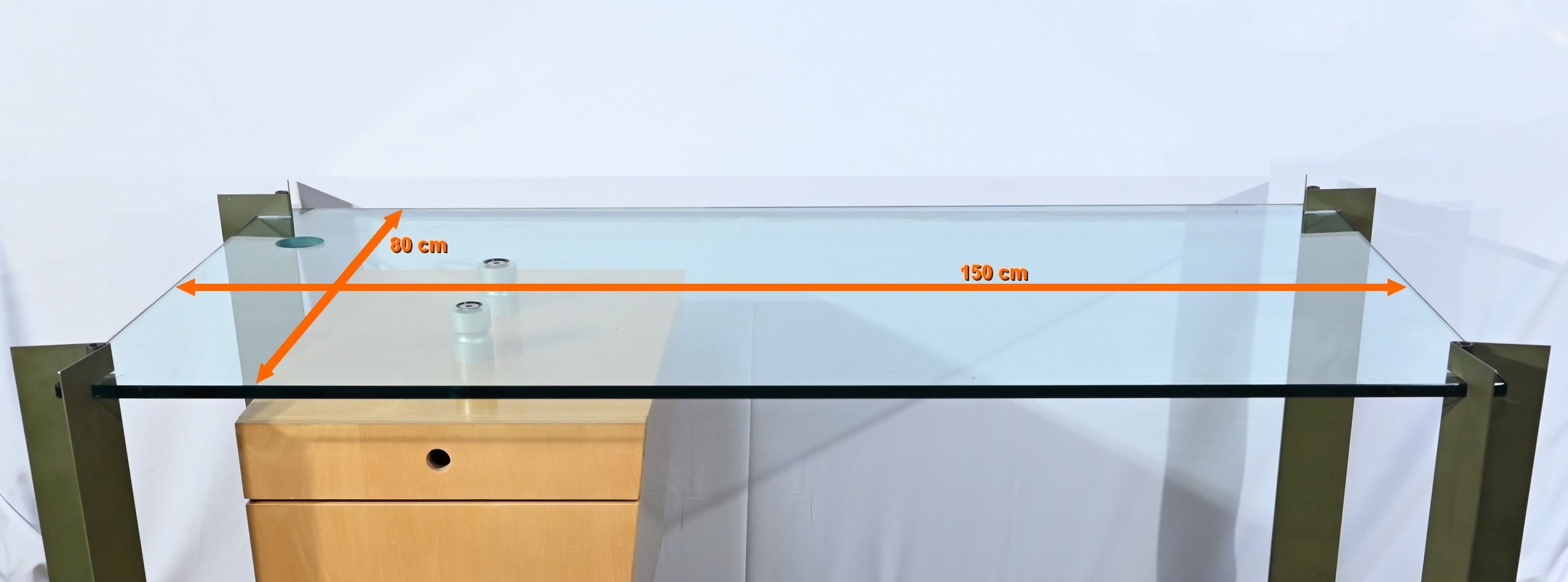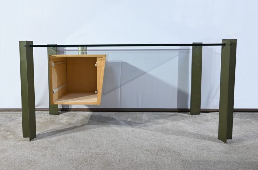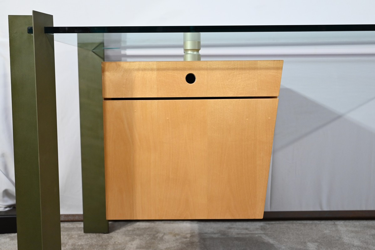 Bureau en Verre et Sycomore, par J.Rondineau pour le Cabinet XI Design – Fin XXe