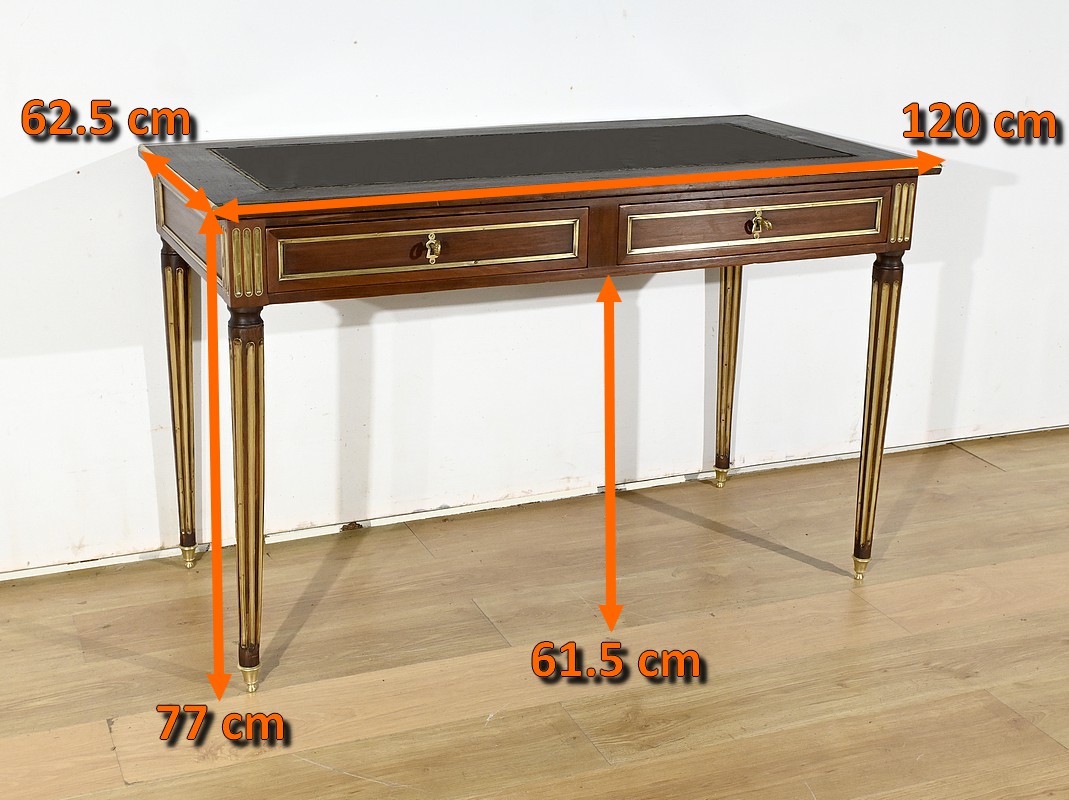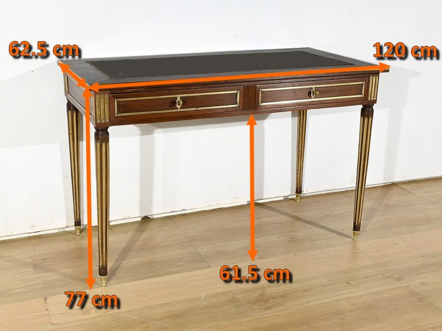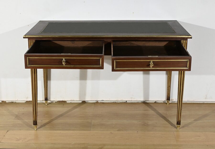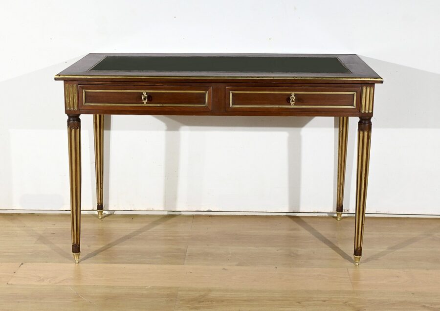 Bureau Plat en Acajou, style Louis XVI- 2ème partie XIXe