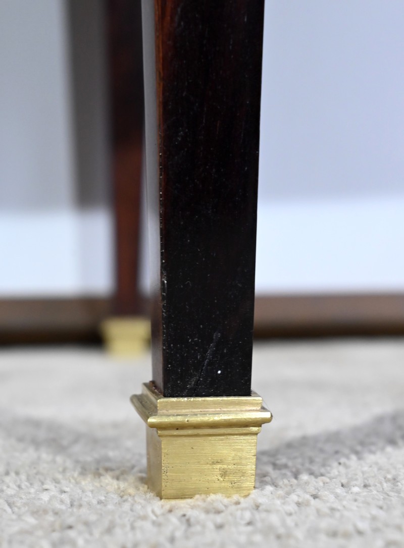 L’ensemble repose sur des pieds gainés se terminant par des sabots laiton.