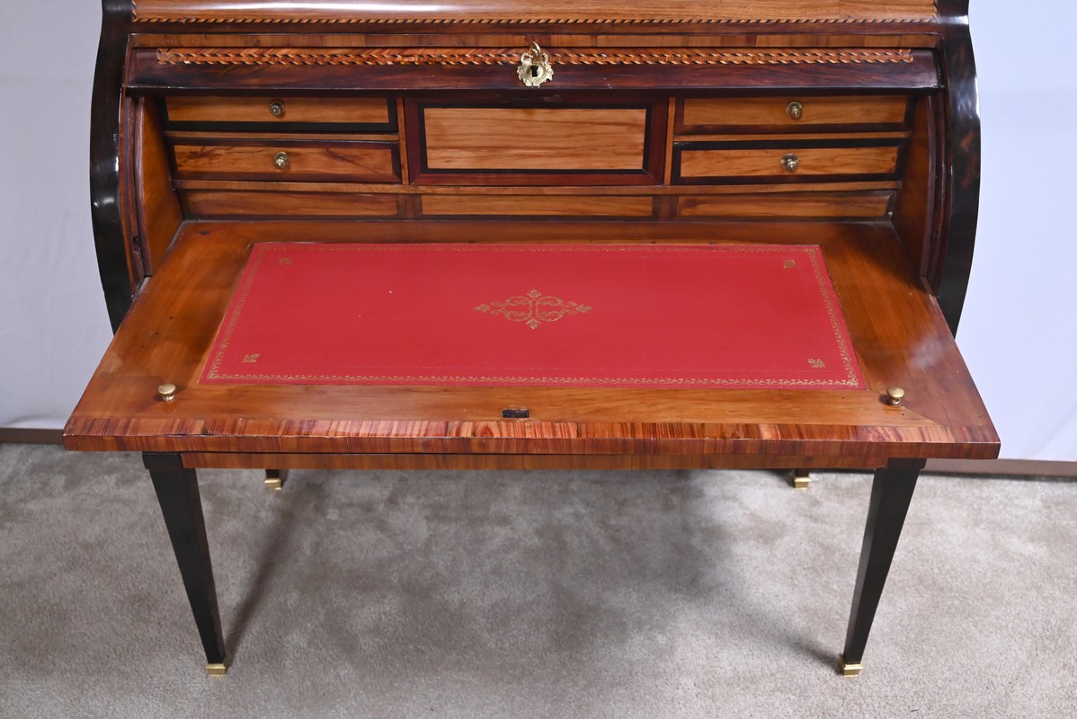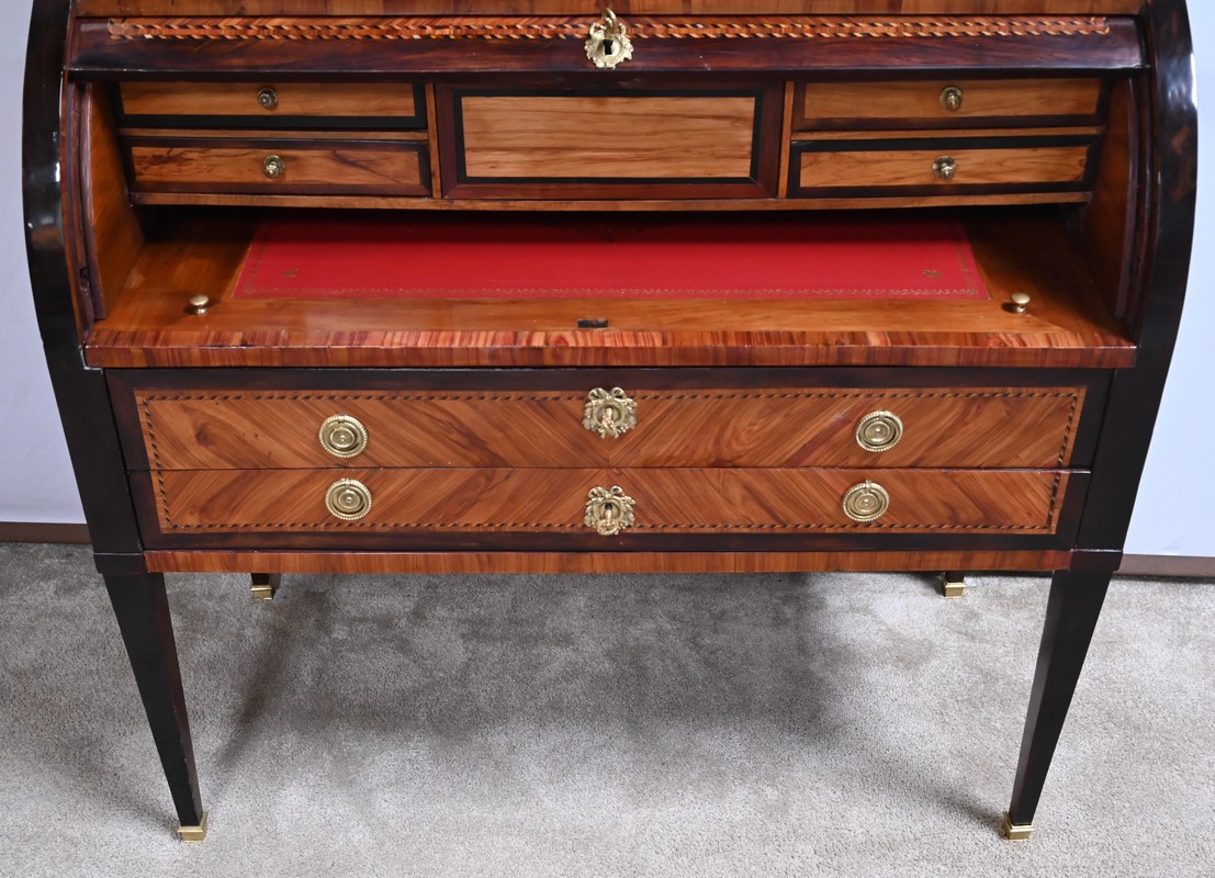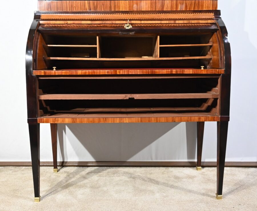 Ce bureau cylindre vitrine en bois précieux séduira par ses lignes harmonieuses, la qualité de ses essences de bois utilisées et ses dimensions très intéressantes.