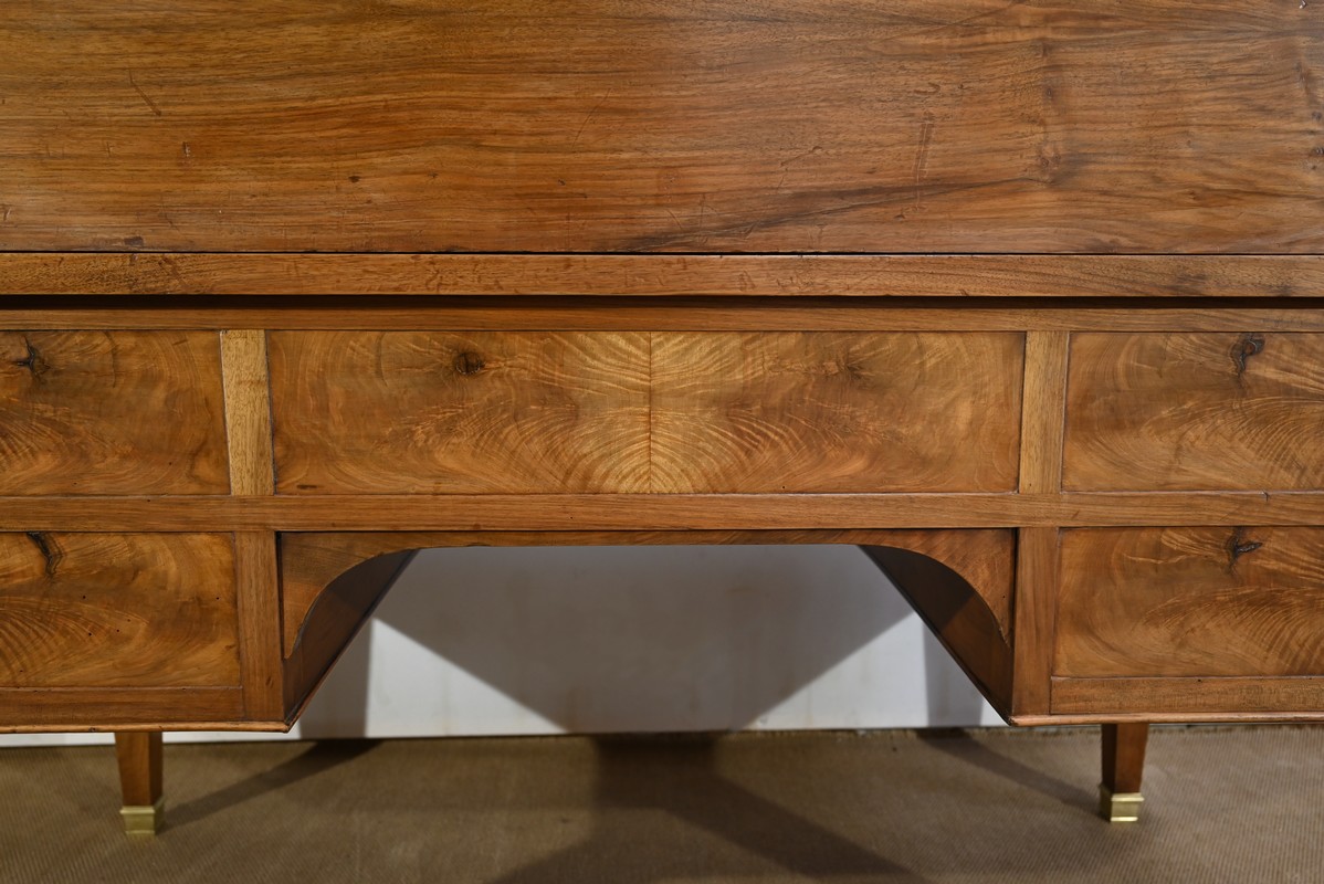 Six tiroirs, dont trois factices attenants à cette tablette, présents en dessous de trois niches identiques, sont également inhérents à ce bureau.