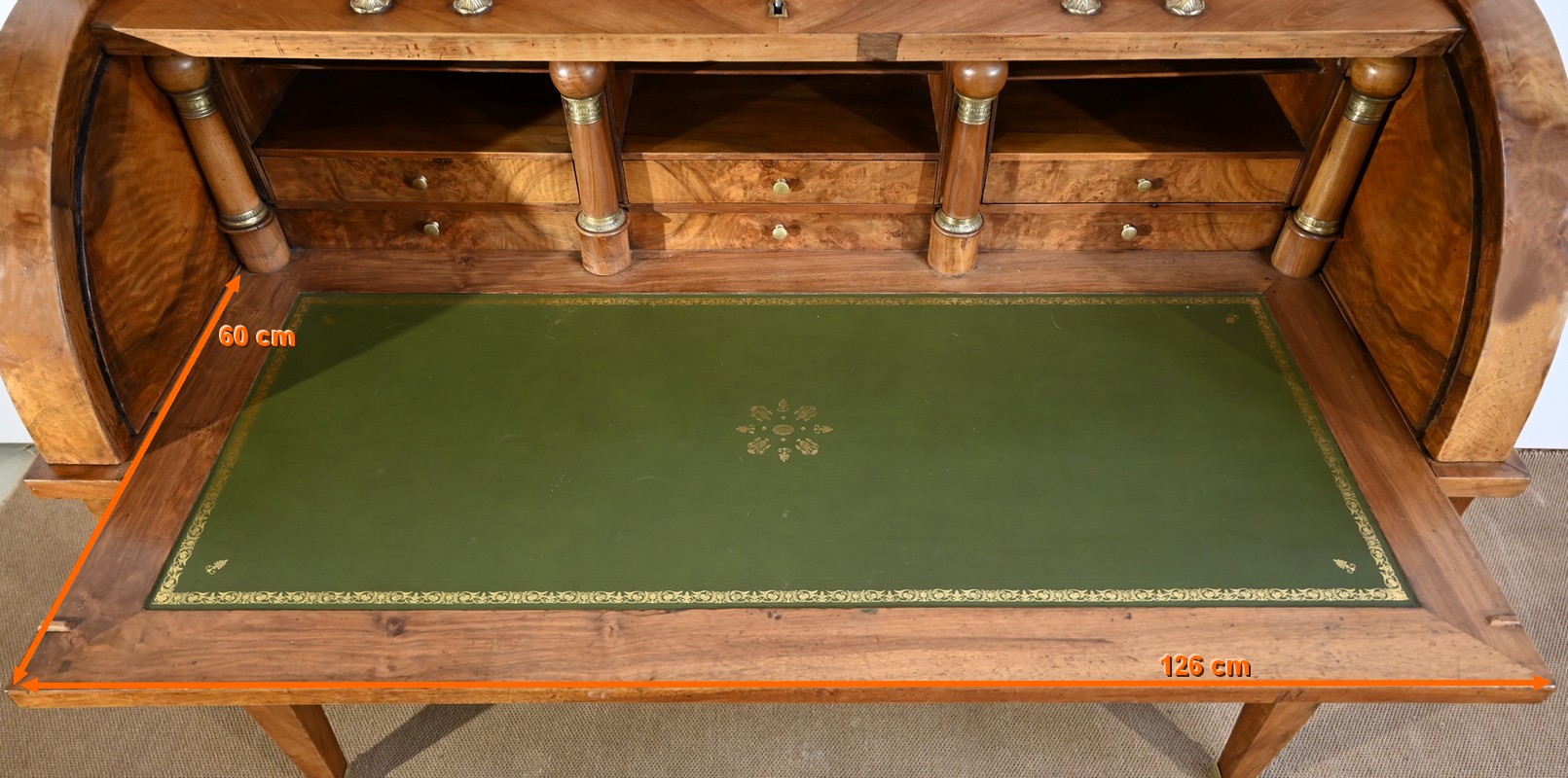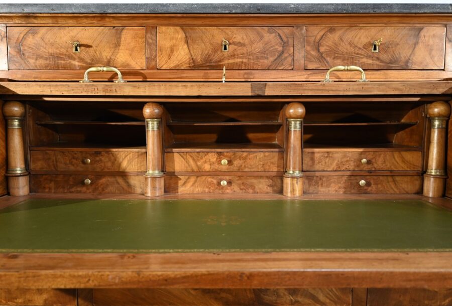 Notre établissement vous présente, par le biais de cet important bureau cylindre de propriété, un grand espace de travail, soigné par sa fabrication et son esthétique. ll saura vous séduire par sa dimension et ses diverses fonctions.