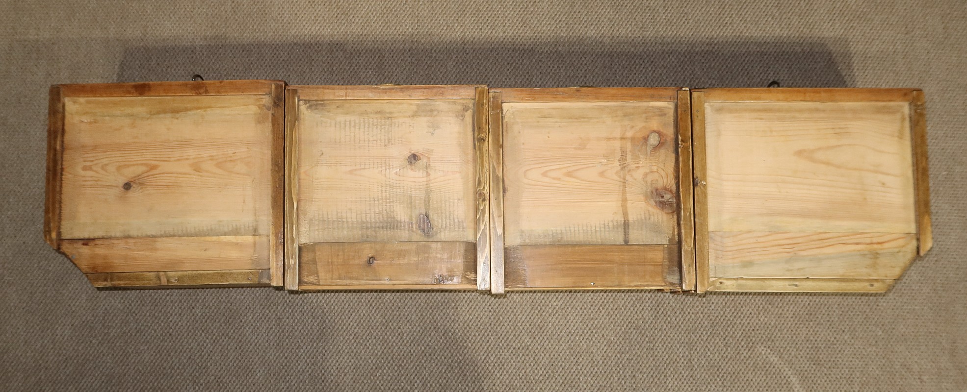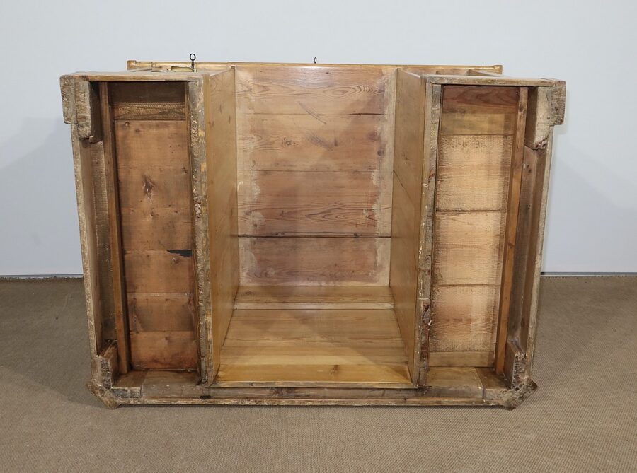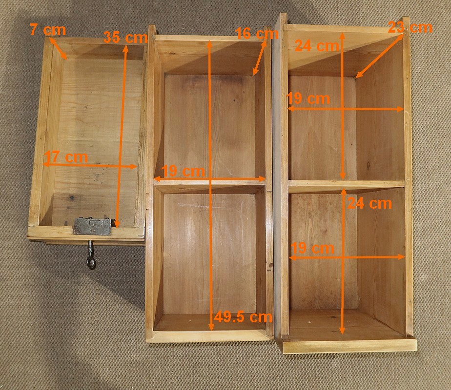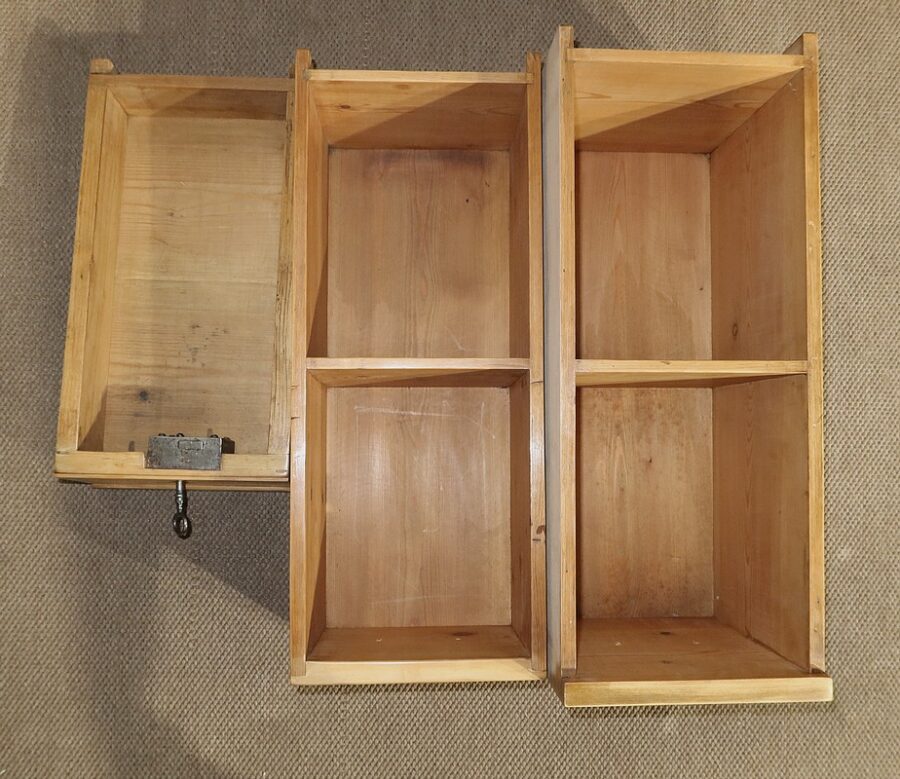 Ce meuble entièrement d’origine possède la couleur miel caractéristique du pitchpin canadien, connu pour sa solidité et son absence de vrillettes.