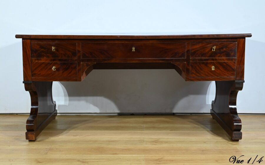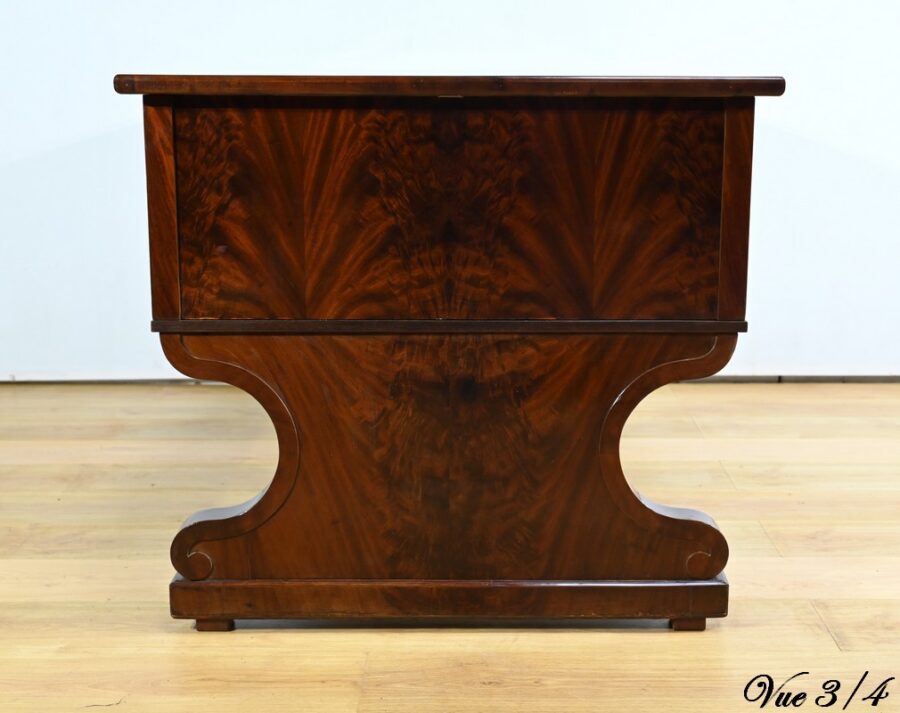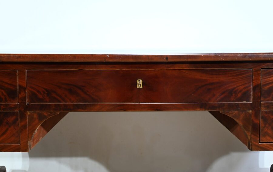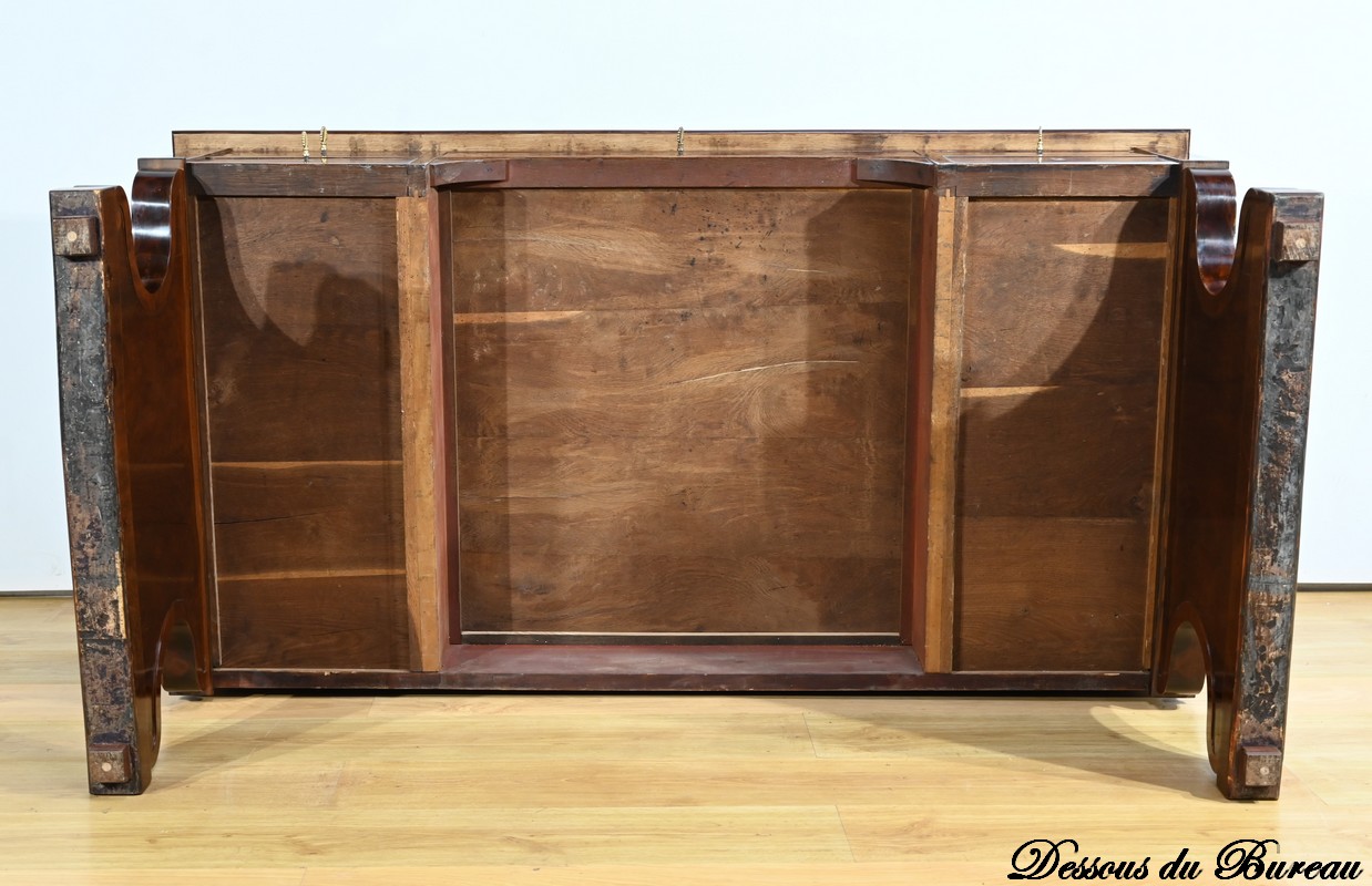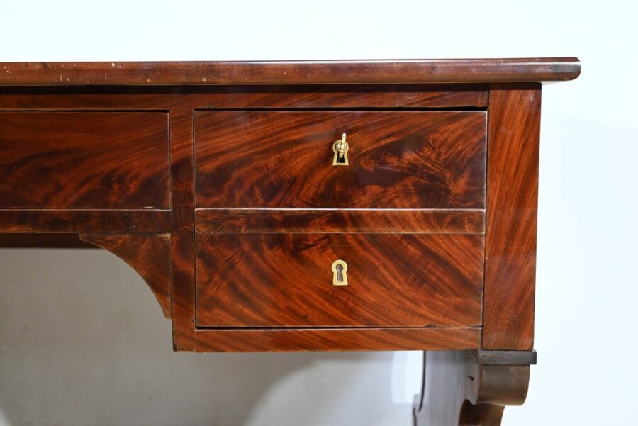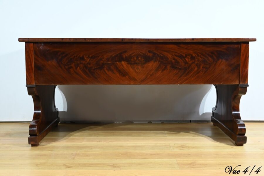 Important bureau de propriété toute faces en placage de ronce d’acajou.