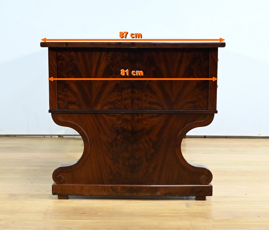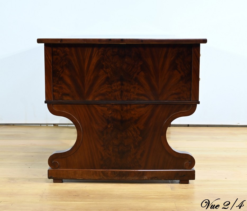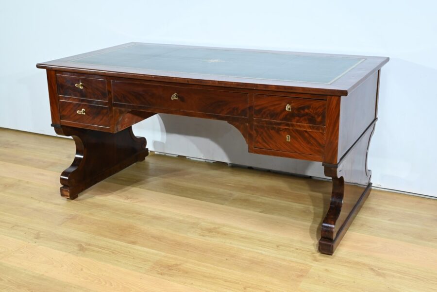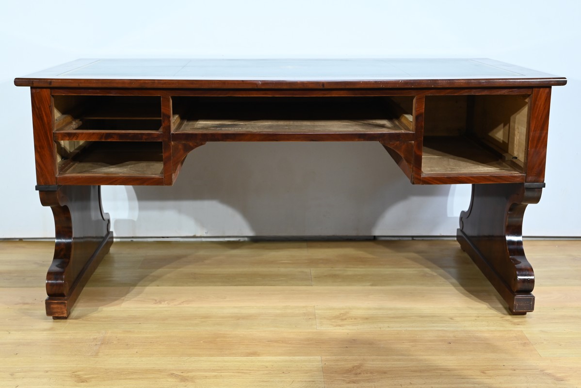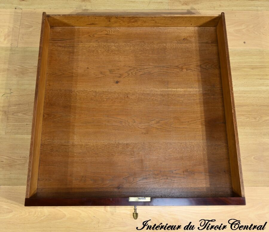 Important bureau de propriété toute faces en placage de ronce d’acajou.