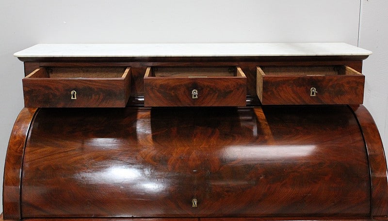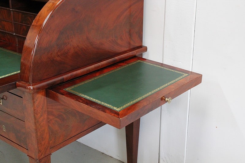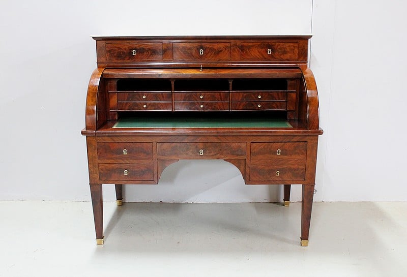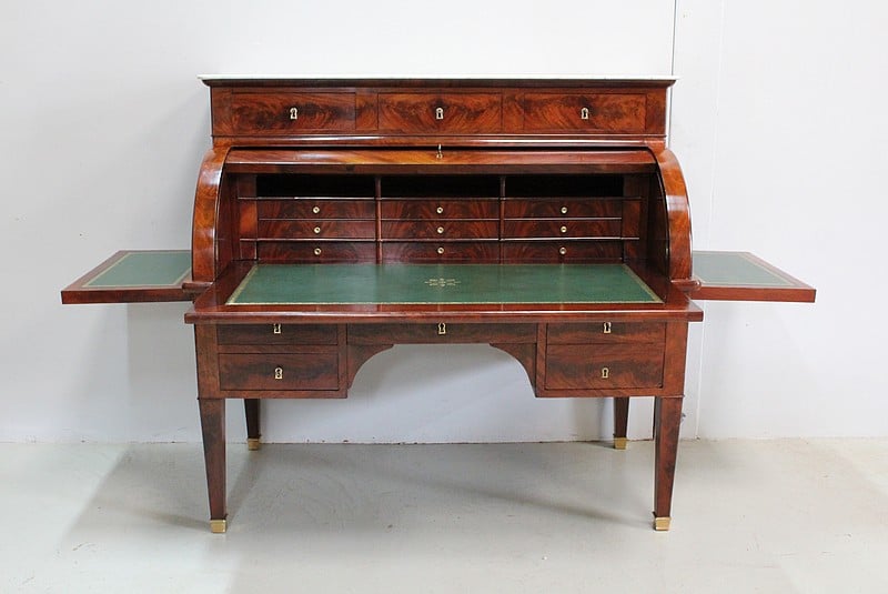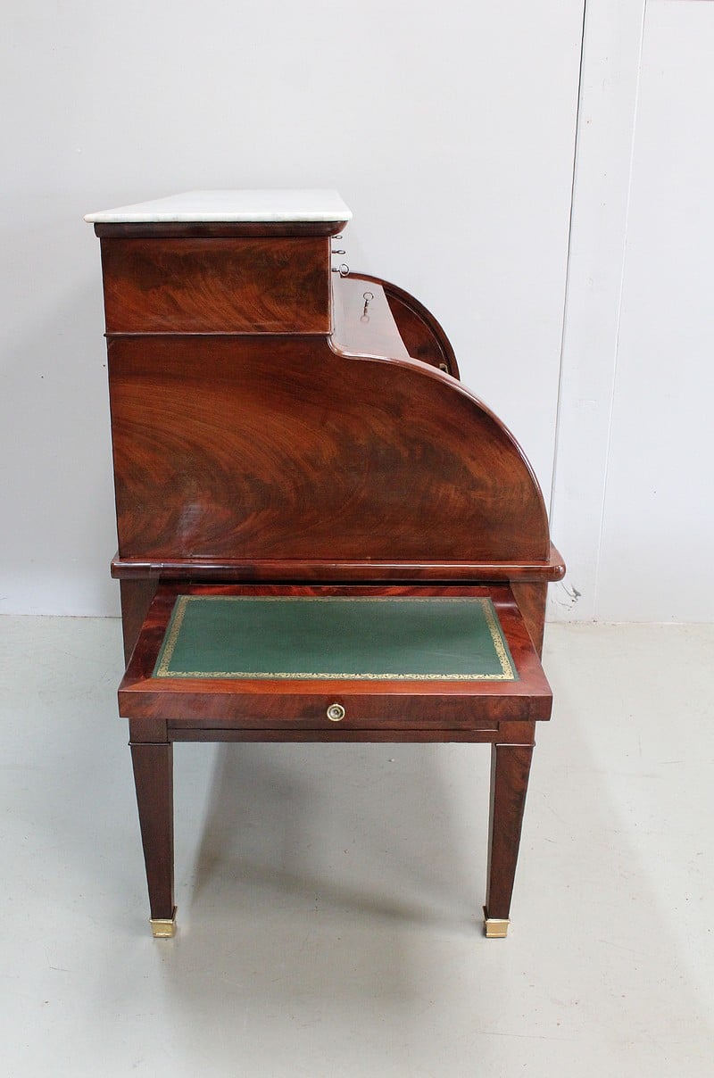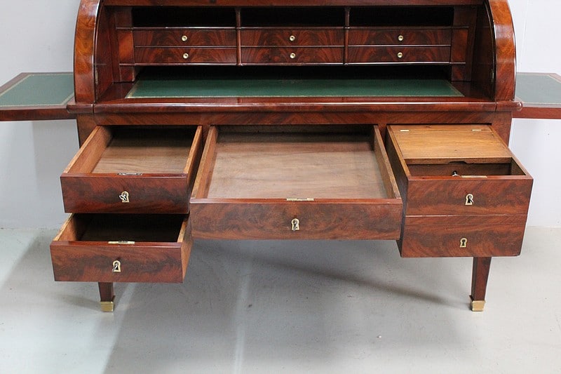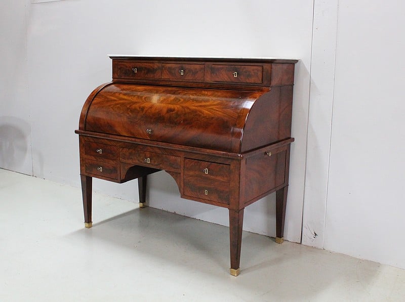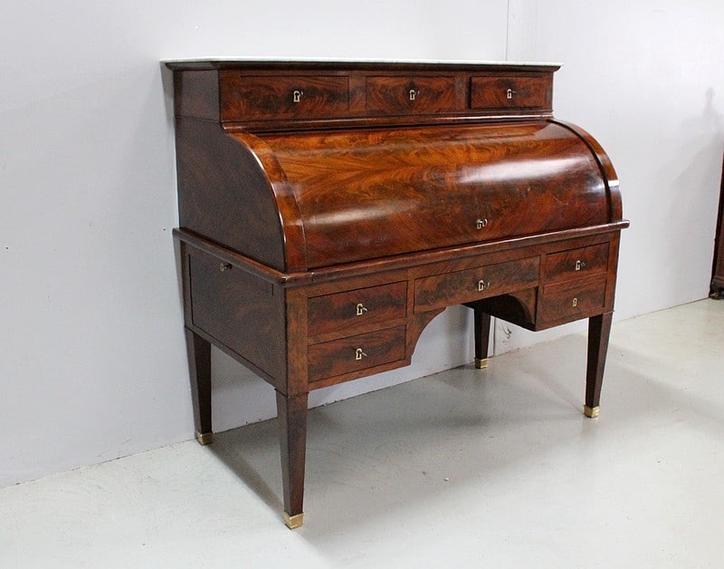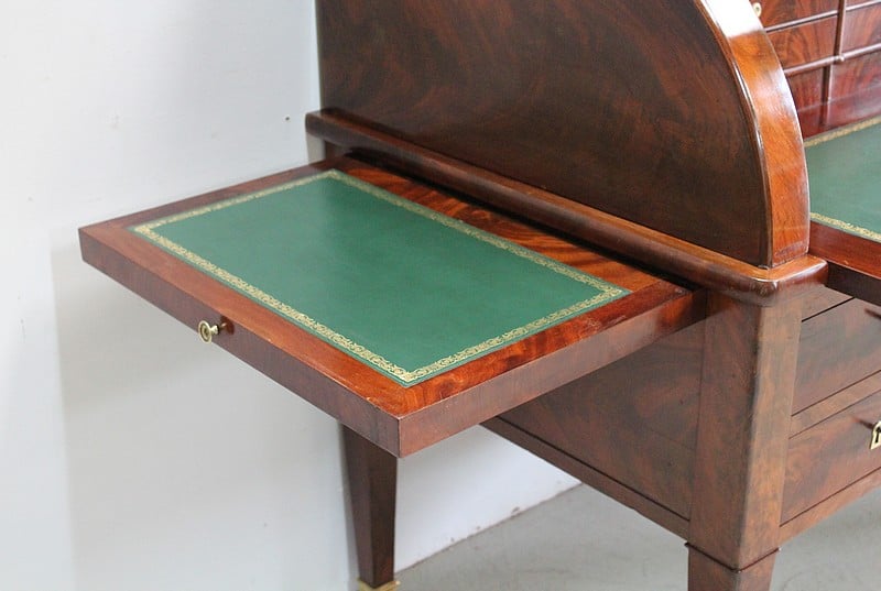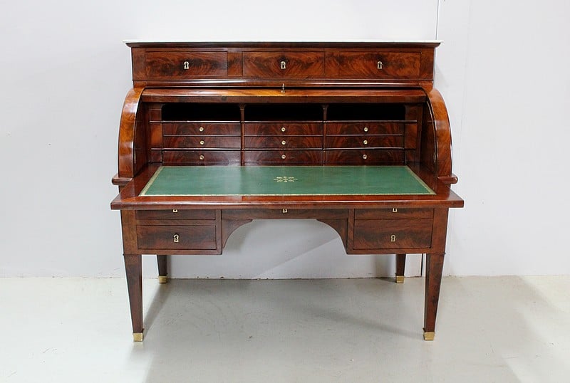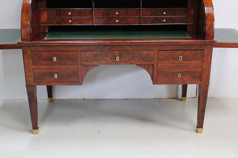 Imposant bureau à cylindre Directoire en placage de Ronce d’Acajou.