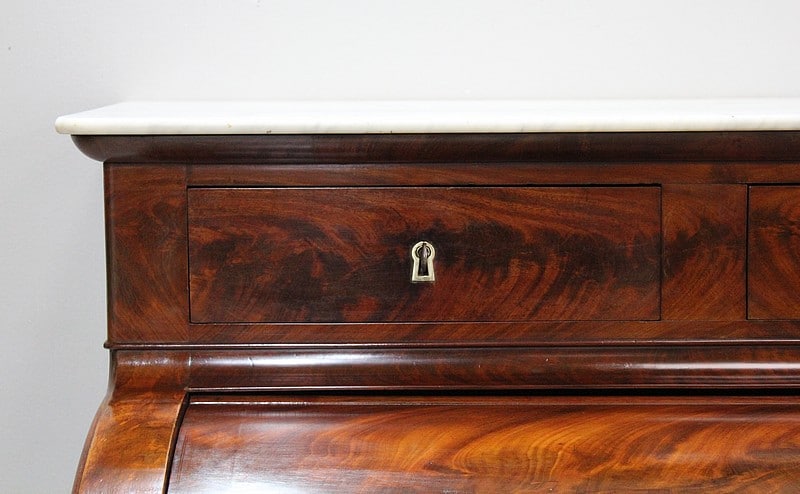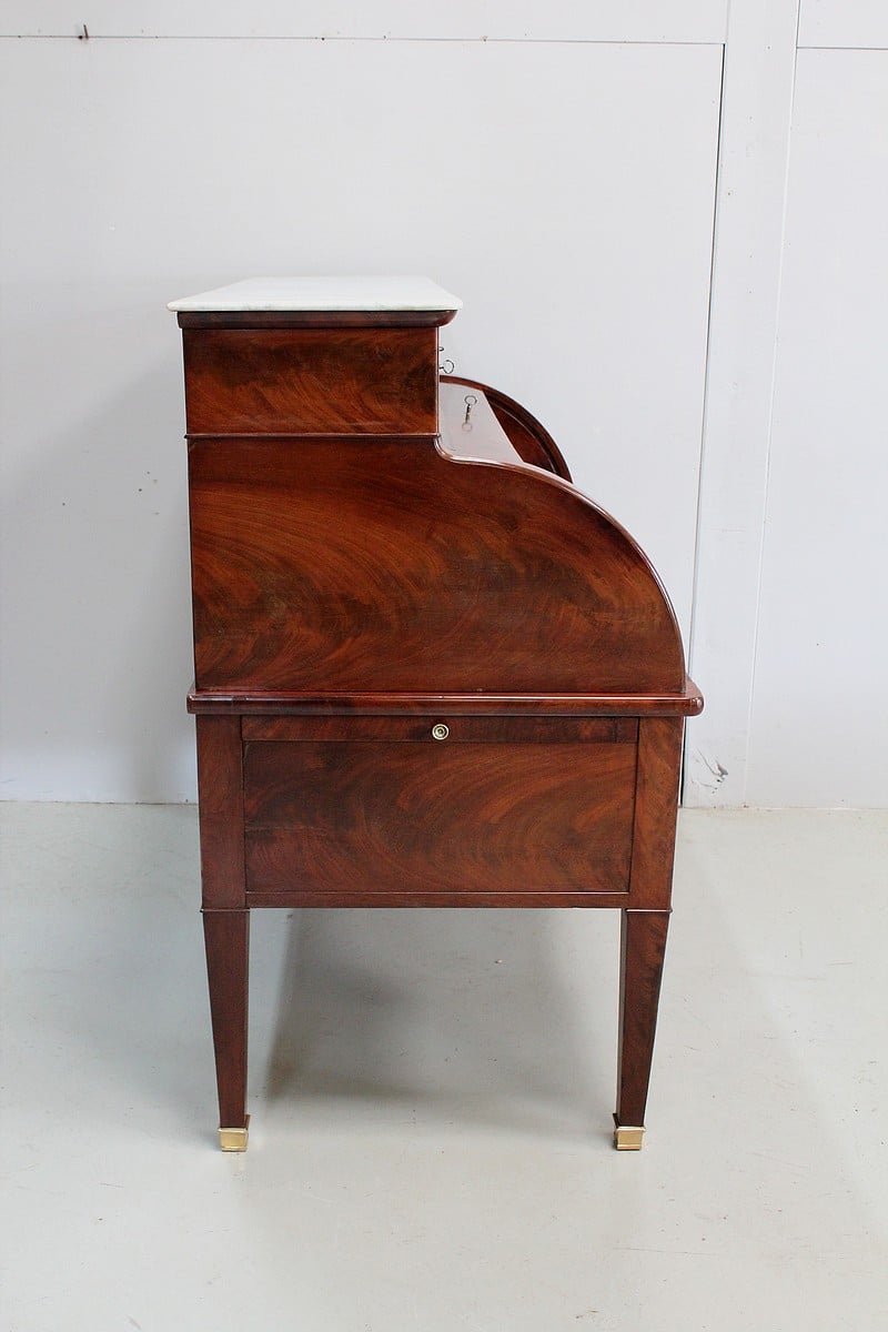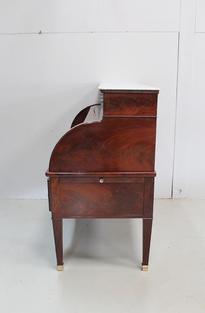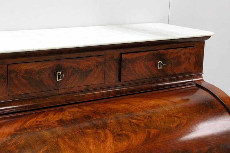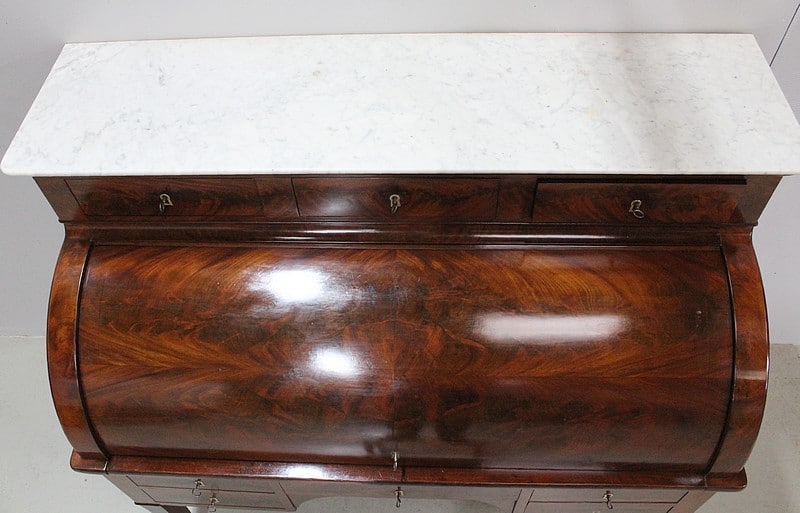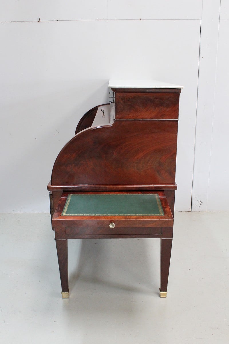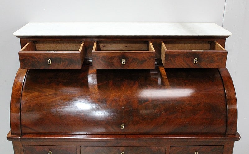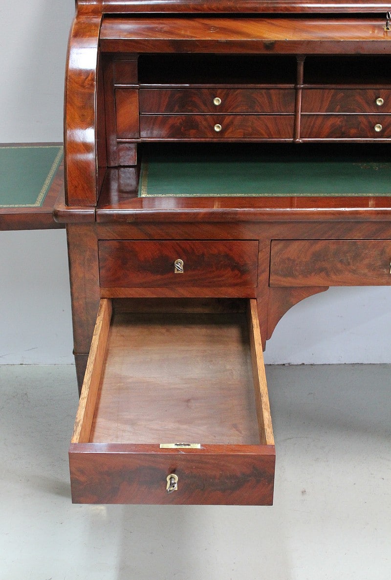 Imposant bureau à cylindre Directoire en placage de Ronce d’Acajou.