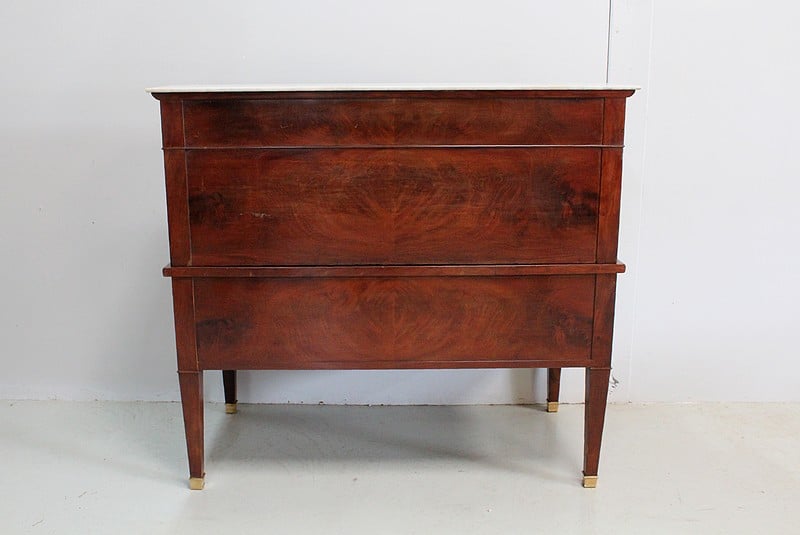 Son dessus en marbre blanc de Carrare est simplement arrondi aux angles avants.