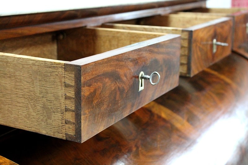 Depuis 50 ans, chaque pièce de mobilier est minutieusement restaurée avec passion dans notre atelier d’ébénisterie.