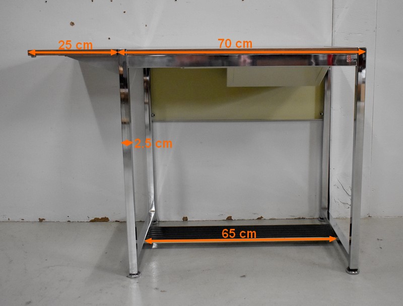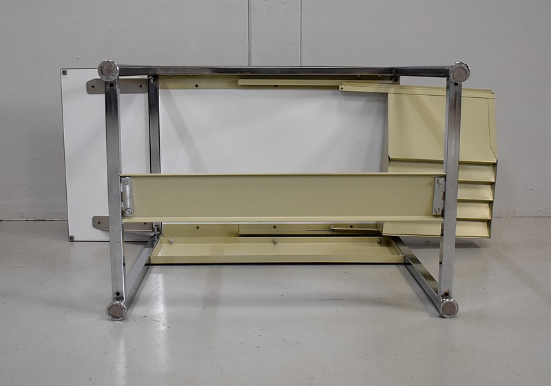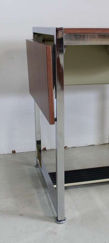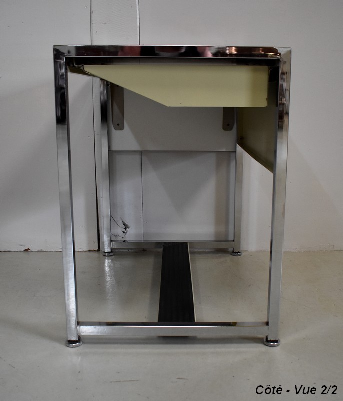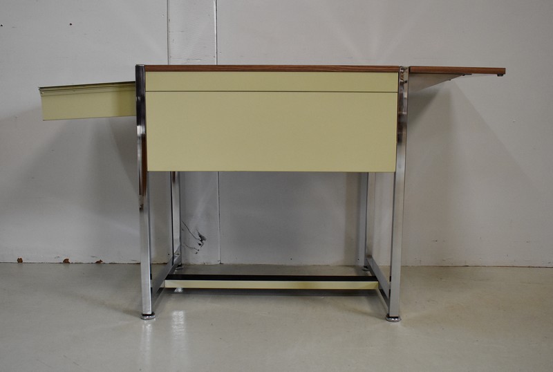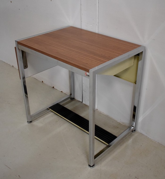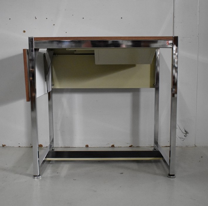 Petit Bureau Rétro des Années 1970, avec Ossature de section carrée en Métal Chromé, édité par Duo.