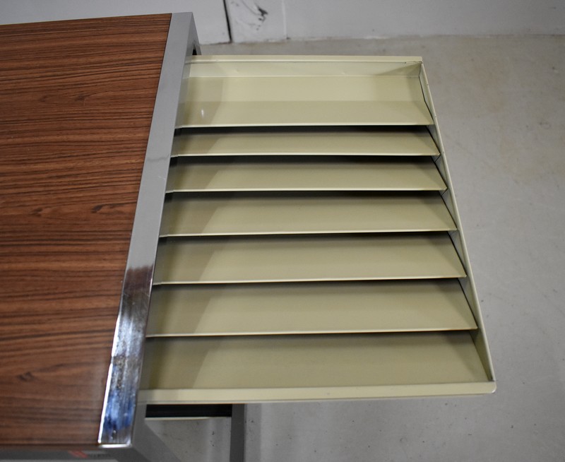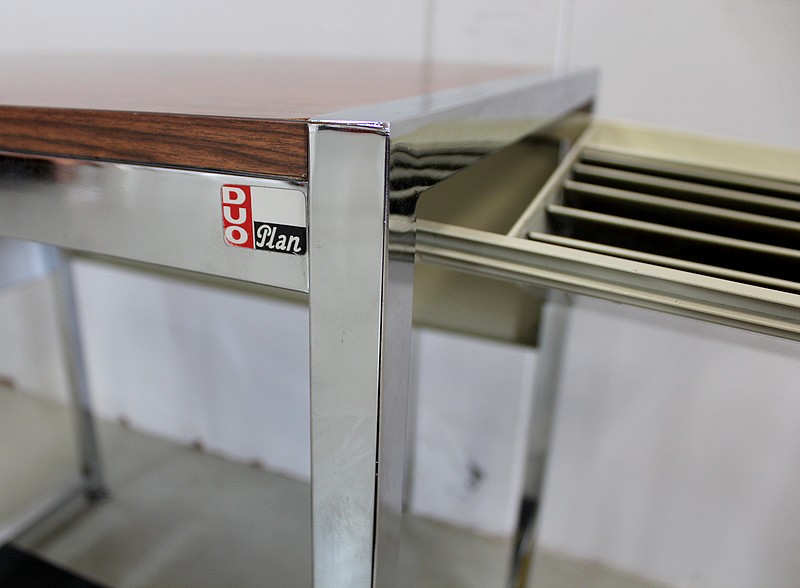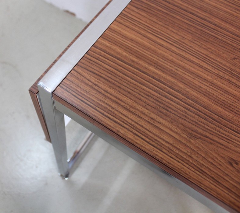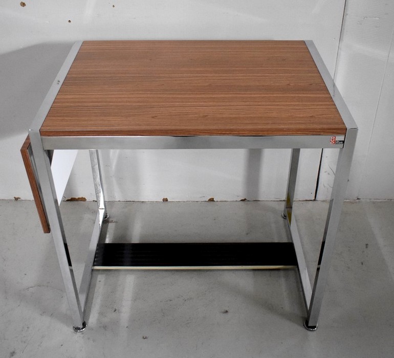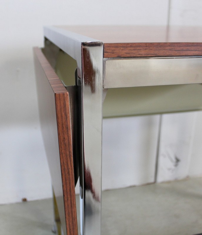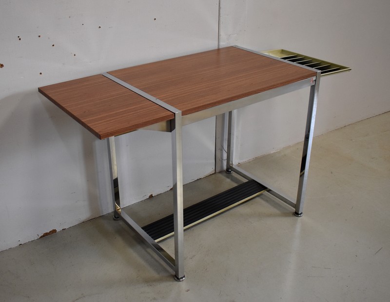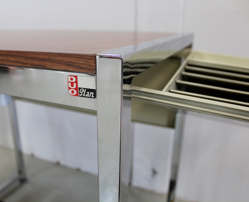 Petit Bureau Rétro des Années 1970, avec Ossature de section carrée en Métal Chromé, édité par Duo.