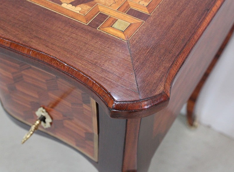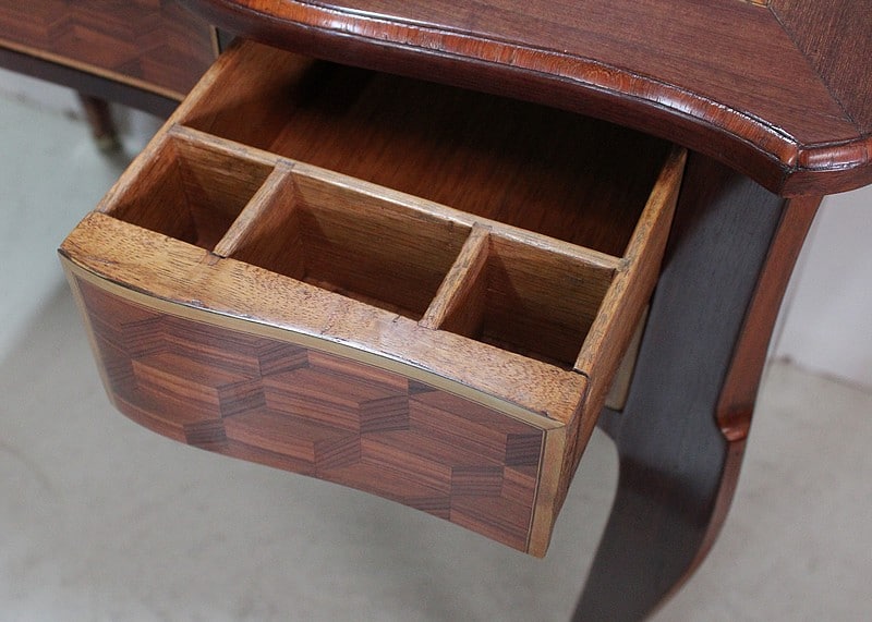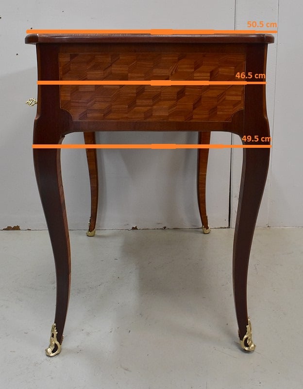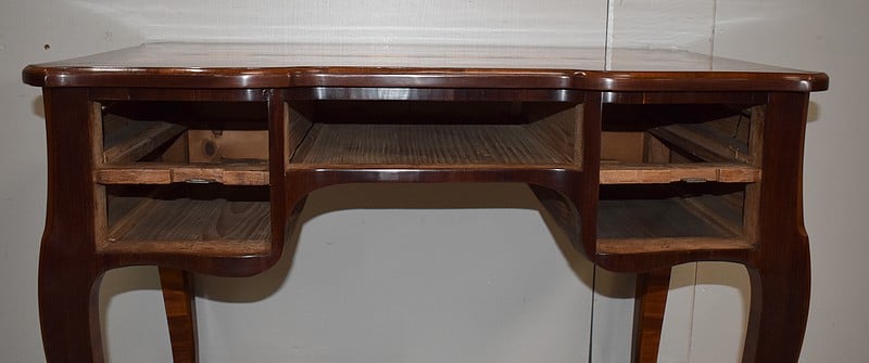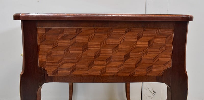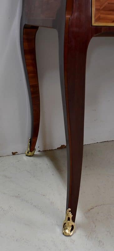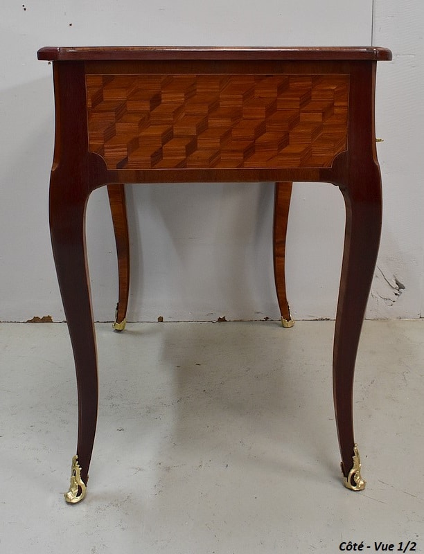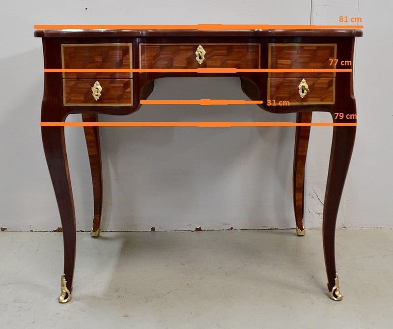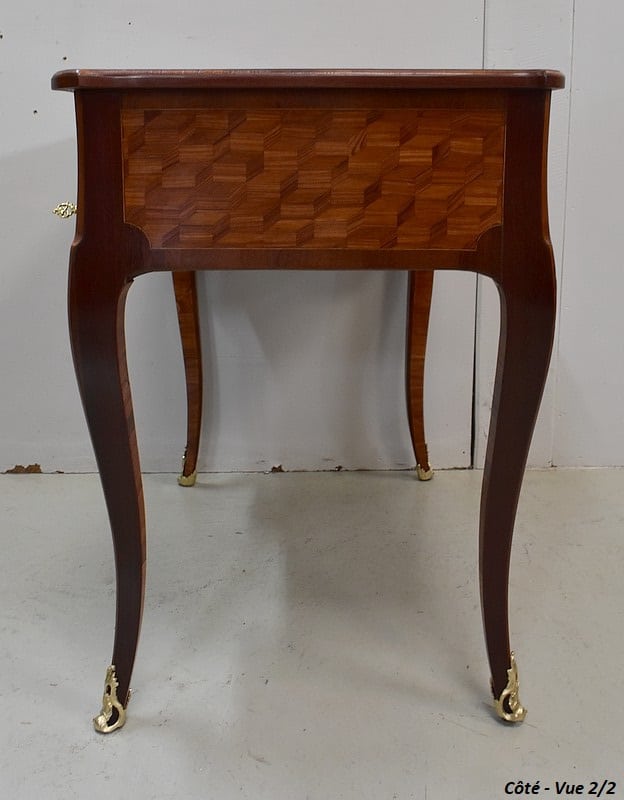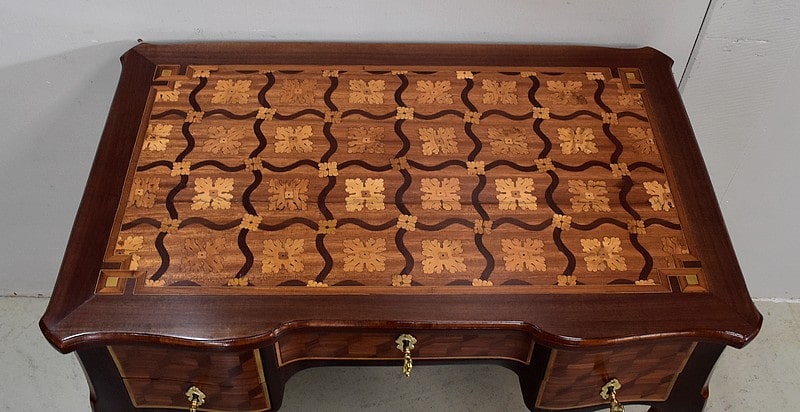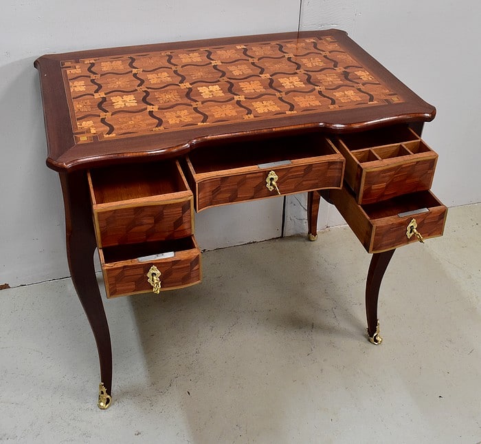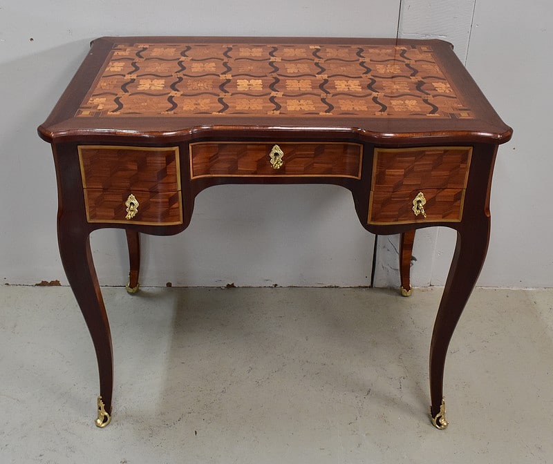 Petit Bureau Plat de Dame, d’époque Louis XV, en Marqueteries et Bois multiples.