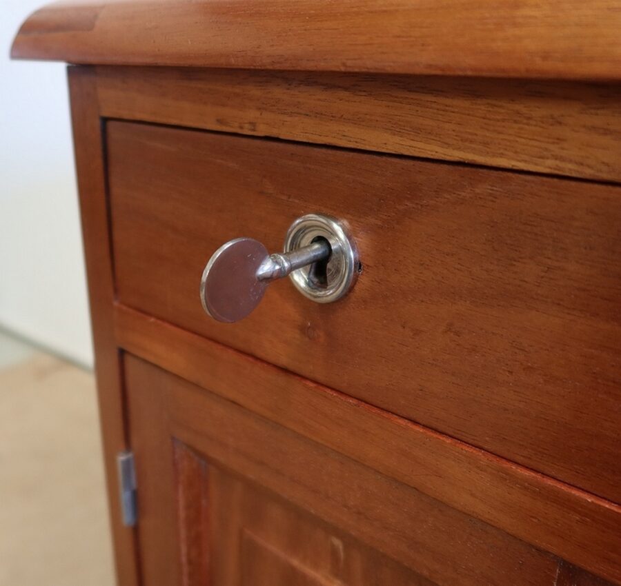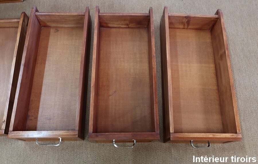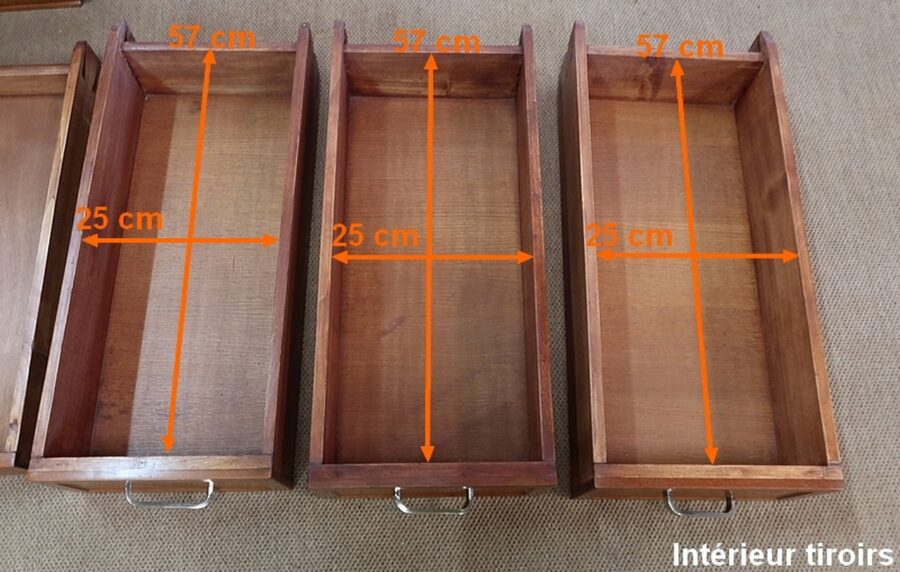 Excellent état après restauration dans notre atelier d’ébénisterie. Finition cirée après décapage.