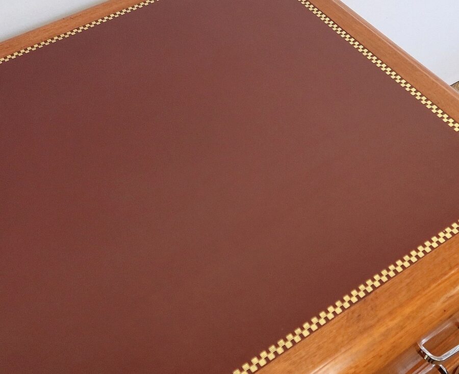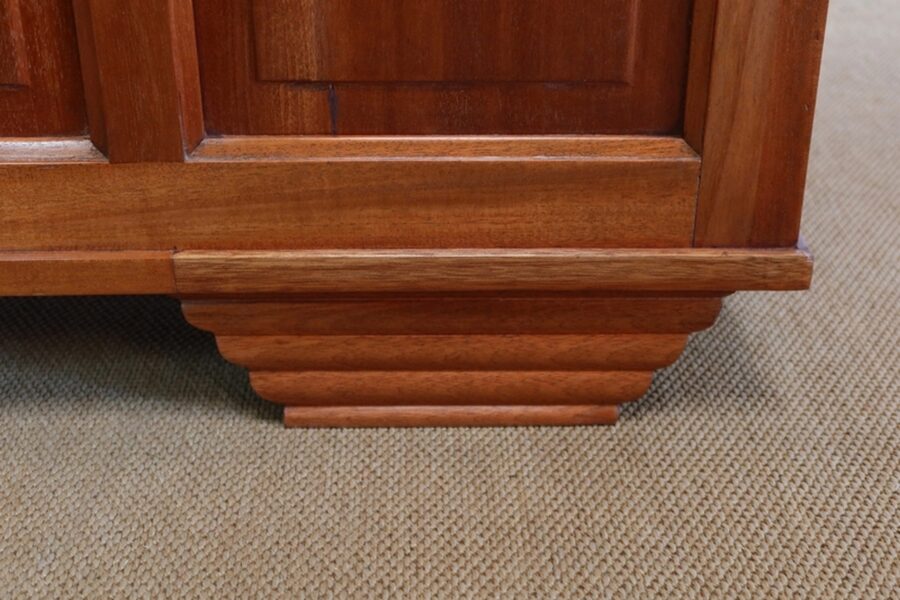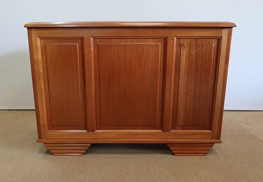 Ce mobilier est sommé d’un cuir neuf agrémenté d’une vignette Art Déco dorée aux motifs géométriques.